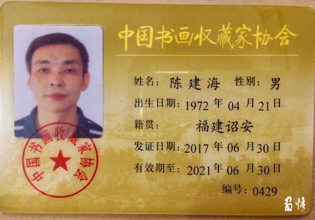 陳建海:中國(guó)書畫收藏家協(xié)會(huì)會(huì)員、漳州市收藏協(xié)會(huì)理事、詔安縣書畫收藏家學(xué)會(huì)展覽部主任