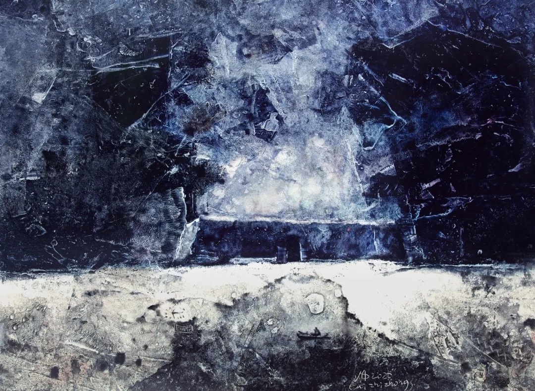 《雨夜方舟》紙本綜合100cm×60cm 2020