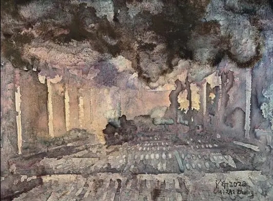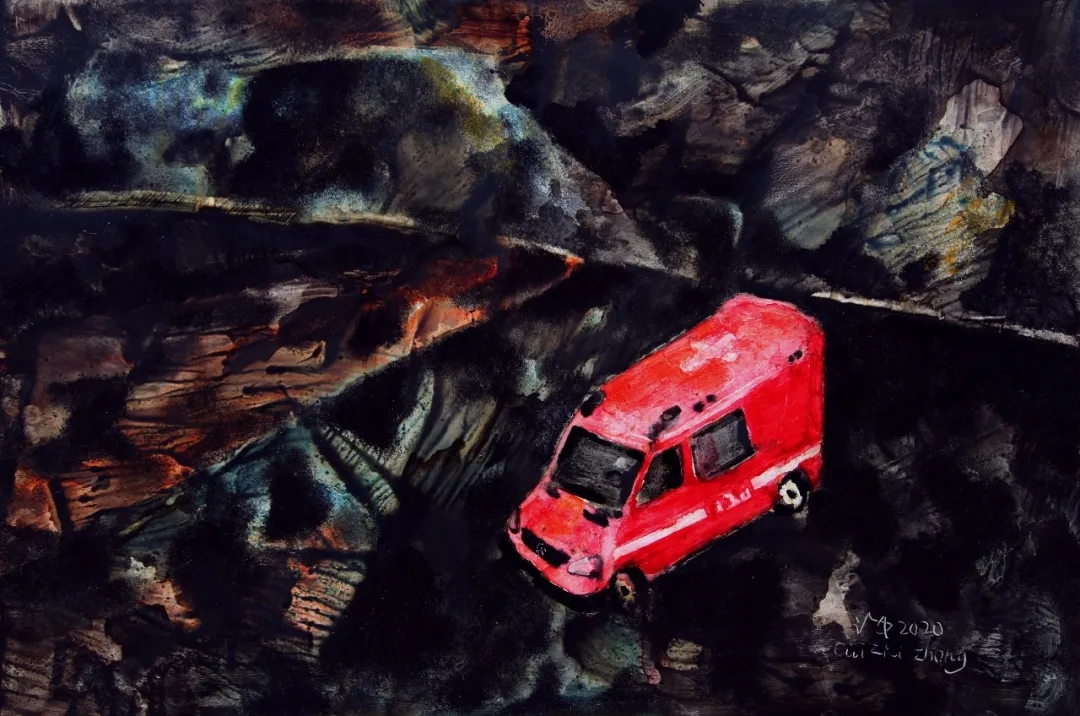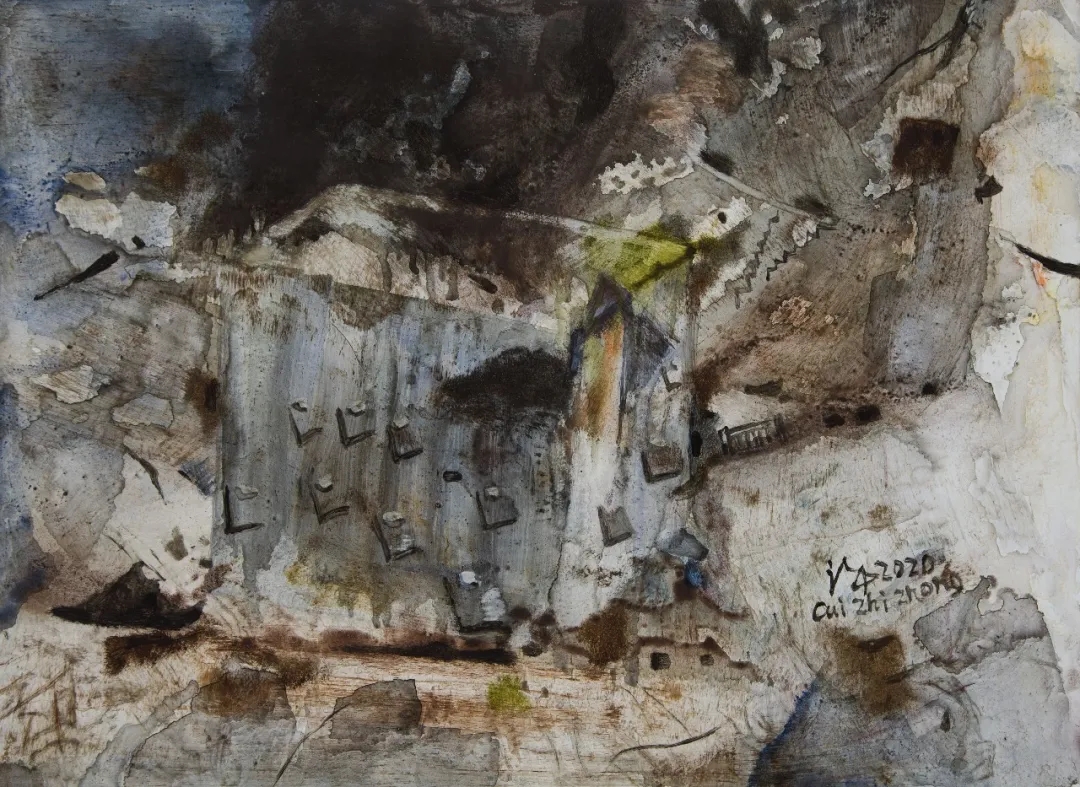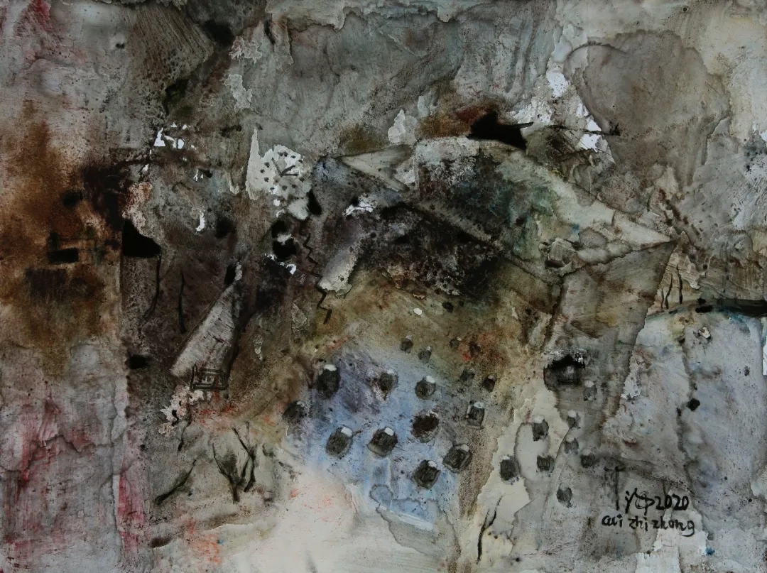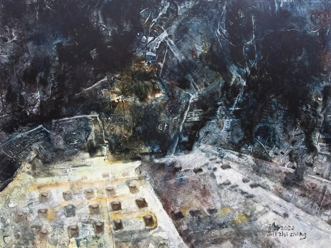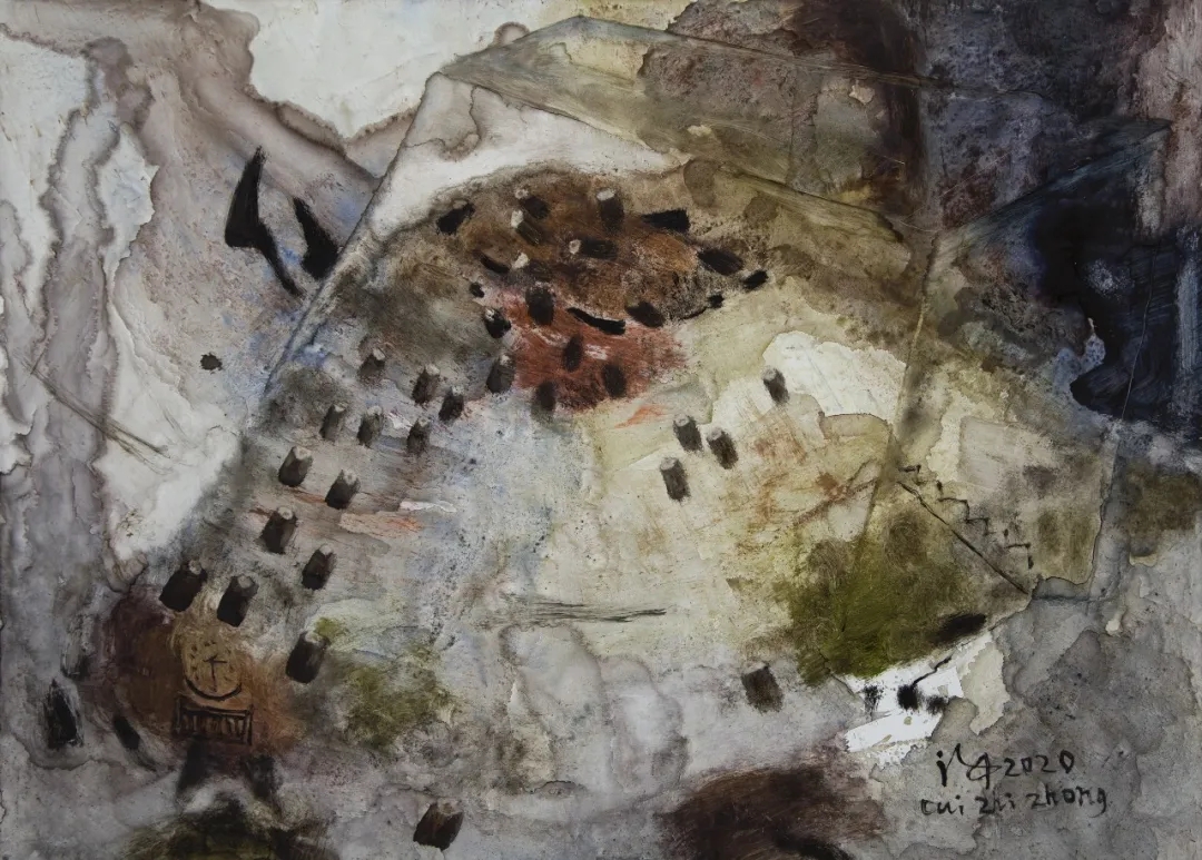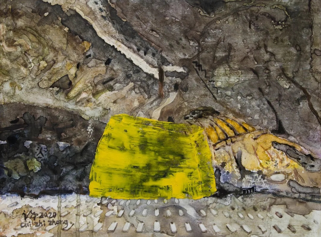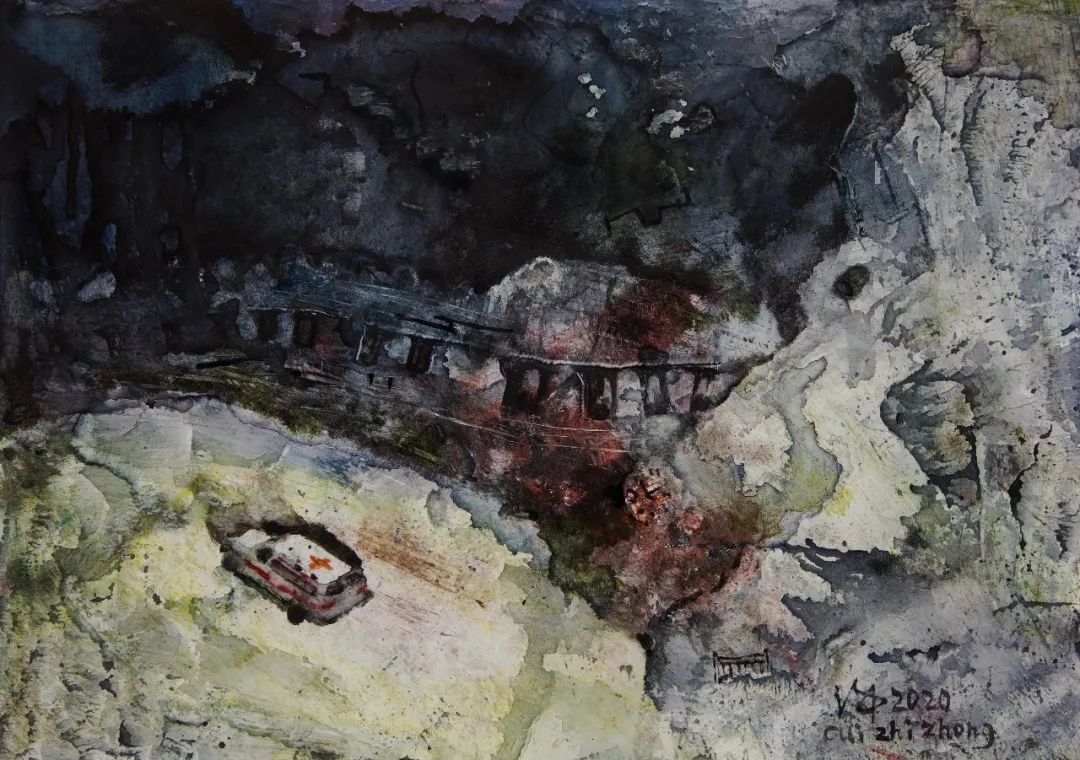 《烽火臺與方艙》紙本綜合45cm×60cm 2020