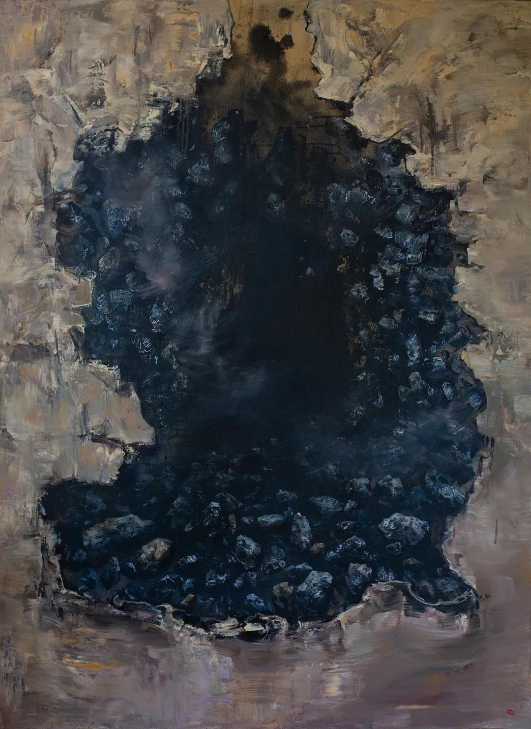 再個(gè)我感受到他一個(gè)強(qiáng)烈的特點(diǎn),就是他的畫面其實(shí)有它的復(fù)雜性!通常來說,佛教繪畫,特別是禪宗,古代的禪意繪畫非常簡練,會(huì)有一種意境感。但是他這個(gè)繪畫其實(shí)比較復(fù)雜,這個(gè)復(fù)雜來源于幾個(gè)方面,一個(gè)方面是他的繪畫技法,包括他對于肌理的強(qiáng)調(diào),畫面的一種空無。其實(shí)這種空無是通過對于物質(zhì)的一種堅(jiān)實(shí)感,可以看到他通過肌理把所有畫面上的形象形體塑造得非常的堅(jiān)實(shí)。同時(shí),這種堅(jiān)實(shí)又是用來反襯所謂的空無。佛教的空無大家都能理解,他不是一種真正的空,而是一種就像我們這次展覽的名字一樣【彼岸】,或者說像佛教里面的一種表象,這些都是表象,對于畫面主體來說都是一種困擾,我覺得這個(gè)是非常關(guān)鍵的。