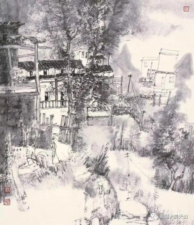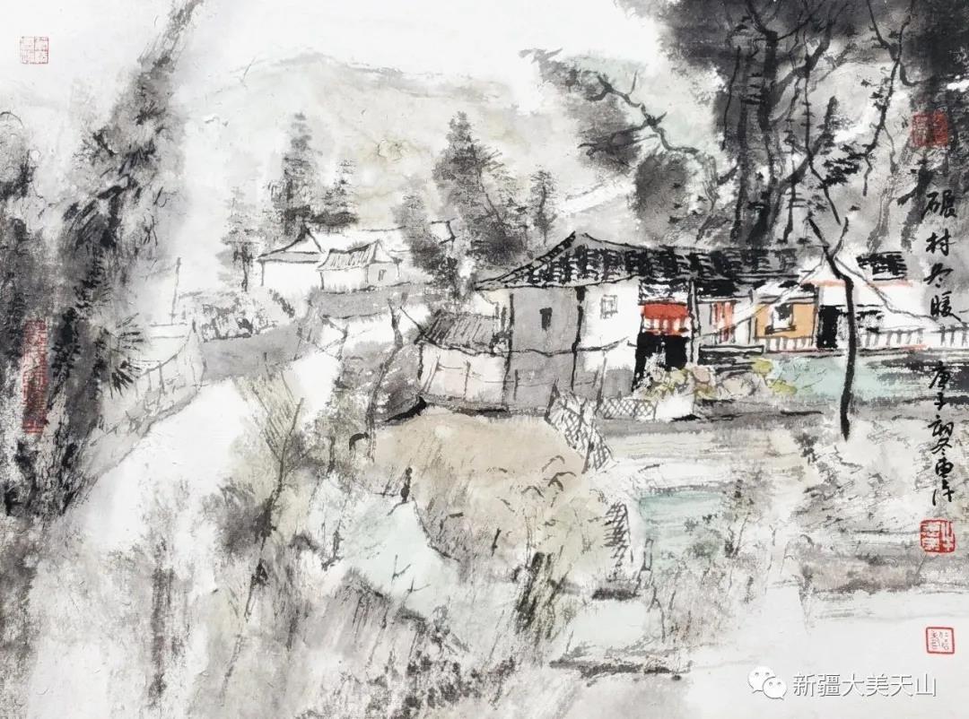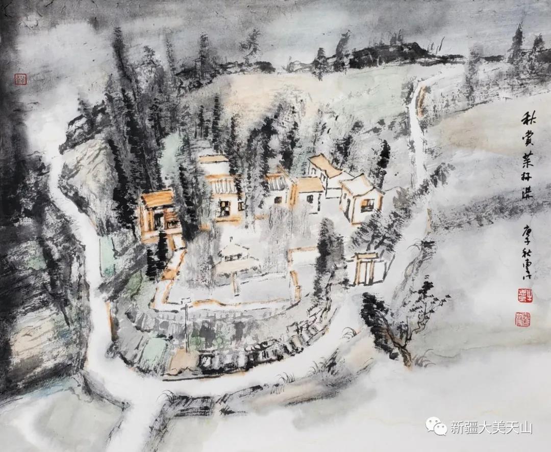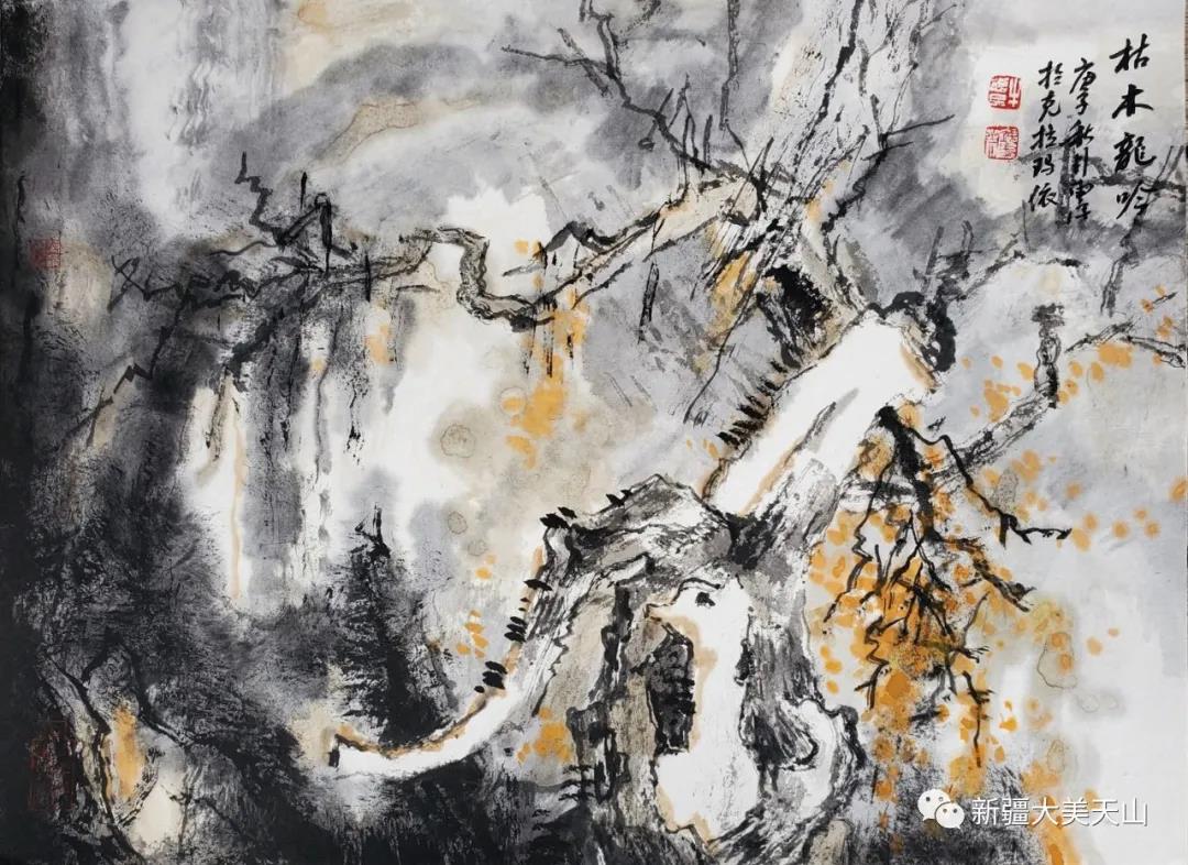 他努力實踐石濤“搜盡奇峰打草稿”的至理名言,熱愛生活,深入生活,真實感受新疆大山大水,用真情感受生活,又把真實感受升華在一幅幅畫作里。