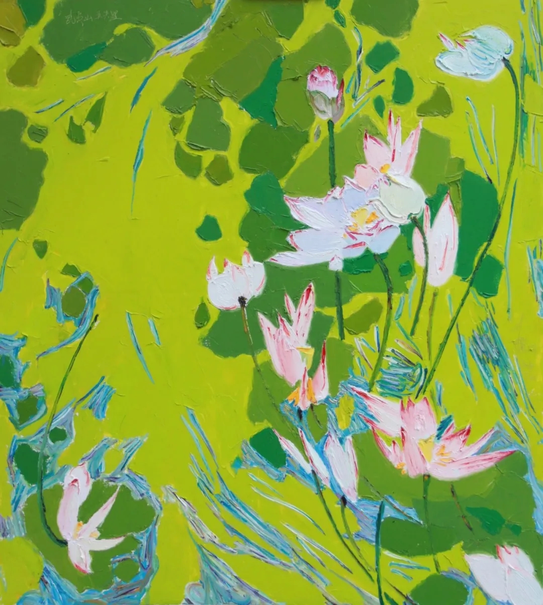 人們常說“藝貴創(chuàng)新”、“筆墨當(dāng)隨時(shí)代”。那么,何為油畫的時(shí)代感?如果我們固守西方原有的一套寫實(shí)模式,或是照搬國外現(xiàn)成的當(dāng)代時(shí)尚的種種表現(xiàn)形式,那都只能是拾人牙慧,這是死胡同。只有當(dāng)我們立足于自己民族文化的深厚土地上,才能使自己的藝術(shù)之樹根深葉茂;而只有當(dāng)我們將自己民族文化的特色有機(jī)地融入藝術(shù)作品中,這才會(huì)使你的藝術(shù)作品具有獨(dú)特的生命,煥發(fā)出別樣的豐彩!楊榮孫正是在這條藝術(shù)道路上努力探索前行著。