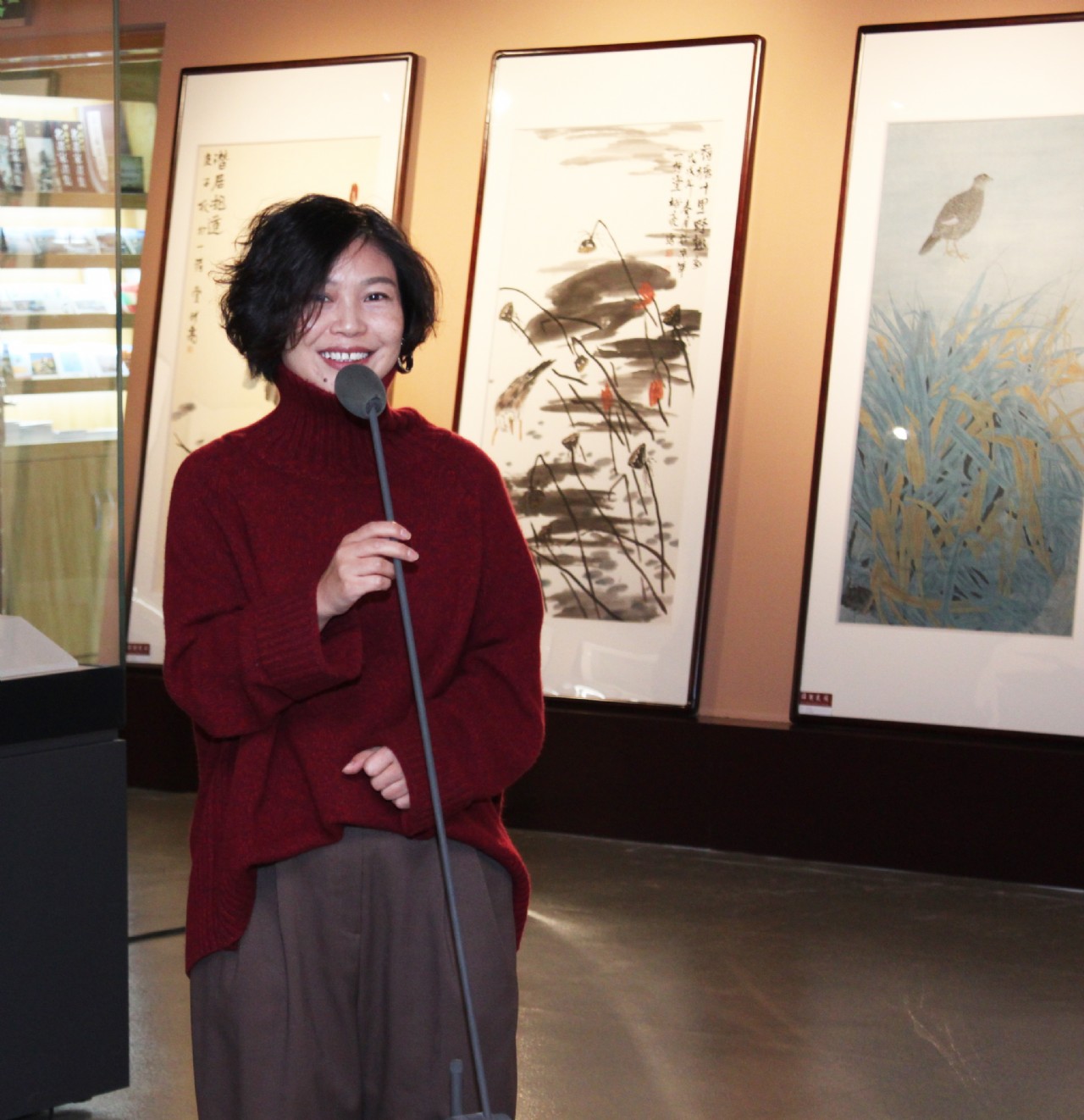 作為此次活動(dòng)的協(xié)辦方之一,范燕燕品牌創(chuàng)始人范燕燕女士向三位參展的藝術(shù)家們致以崇高的敬意。傳播和推廣敦煌文化,是所有藝術(shù)家的共同使命。范燕燕依托自身的藝術(shù)家資源,此次邀請陳文海老師師生三人來敦煌辦畫展,旨在構(gòu)建一個(gè)藝術(shù)家交流互動(dòng)的平臺(tái),促進(jìn)各界藝術(shù)家的交流互動(dòng)。她說,第一,今天這場展覽的緣起,是我與陳裕亮老師同為中央統(tǒng)戰(zhàn)部代表人士班同學(xué)。同時(shí),我的家鄉(xiāng)西安是陸上絲綢之路的起點(diǎn),陳老師的家鄉(xiāng)閩南是海上絲綢之路的起點(diǎn),然后匯聚在絲綢之路重要節(jié)點(diǎn)敦煌,這就是絲綢之路帶來的緣份。第二,陳裕亮老師是中國文藝評論家協(xié)會(huì)理事,也是全國最年輕的理事,更是卓有成就的美術(shù)評論家和畫家,他在文人畫的現(xiàn)代轉(zhuǎn)型這一領(lǐng)域的研究和創(chuàng)作,是頗有建樹的。他和著名青年畫家陳惠揚(yáng)老師都是陳文海老師的學(xué)生,他們這次的展覽充分體現(xiàn)出尊師重道和師承的傳統(tǒng)。敦煌是歷史文化名城,是中華文明的重要承載地之一,他們師生之間這種巡回展,既體現(xiàn)出藝術(shù)的師承關(guān)系,又是充分體現(xiàn)了尊師重道的美德。這種對傳統(tǒng)美德的尊重和弘揚(yáng),正是召顯了敦煌的文明精髓。陳文海老師是漳浦美協(xié)主席,是福建當(dāng)?shù)刂漠嫾液兔佬g(shù)教育家,他工花鳥、人物、山水,作品既有寫實(shí)的,也有寫意的,可以說是一個(gè)藝術(shù)素養(yǎng)非常全面的畫家。陳惠揚(yáng)老師是非常有才氣的青年畫家,他的畫有宋人的精致,又有時(shí)代的呼喚和審美張力。