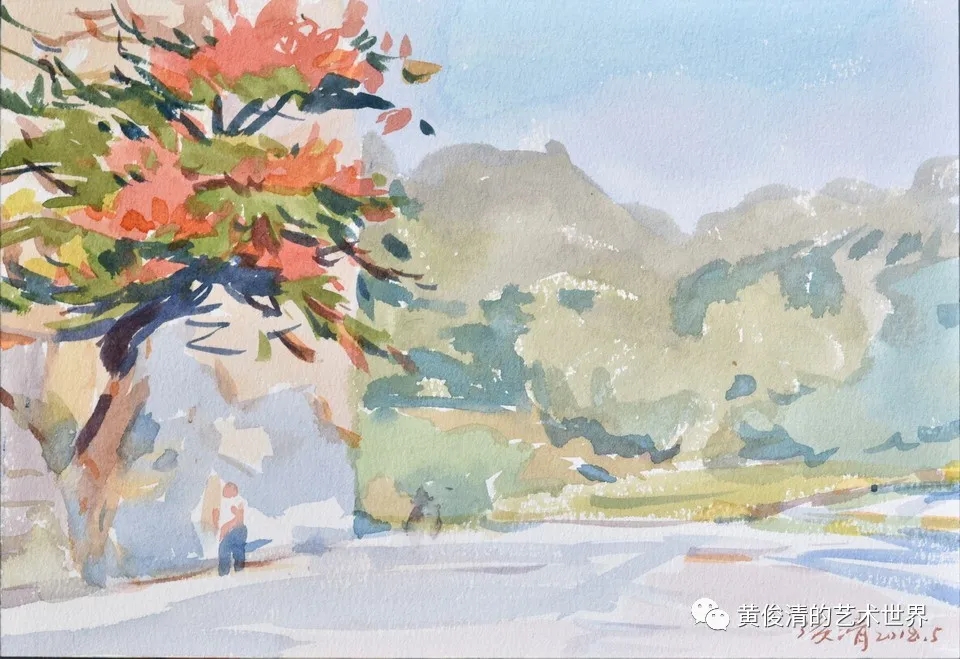 三家村是校園里的交通樞紐,它連接著宿舍與教室,一邊是吃喝拉撒的人間煙火,一邊是孜孜不倦的刻苦攻堅(jiān),向左走還是向右走,決定了人生未來(lái)的方向,這個(gè)道理在多年后許多人才真正明白。路邊上種著幾株鳳凰樹(shù),茂盛的枝葉遮住大半個(gè)天空,樹(shù)蔭下立著一面海報(bào)墻,上面層層疊疊粘貼著各式各樣的講座或是校外兼職的海報(bào)。有人渴求知識(shí),有人好奇繽紛的世界,在開(kāi)著鳳凰花的三岔路口,我們開(kāi)始思考、開(kāi)始抉擇。每年七月,當(dāng)校園廣播播放《鳳凰花開(kāi)的路口》這首歌的時(shí)候,最珍惜的朋友終于在鳳凰樹(shù)下分頭走了。為什么最美的花開(kāi)總預(yù)示著分離,為什么人生沒(méi)有永遠(yuǎn)的牽手?那個(gè)夏季以及后來(lái)的無(wú)數(shù)個(gè)夏季,我們頻頻回首,三家村的鳳凰花依舊,同樣的故事也一遍又一遍重復(fù)上演。人生無(wú)法倒帶,好在黃俊清用畫(huà)筆為我們珍藏起這鳳凰花開(kāi)的路口。