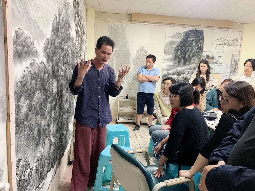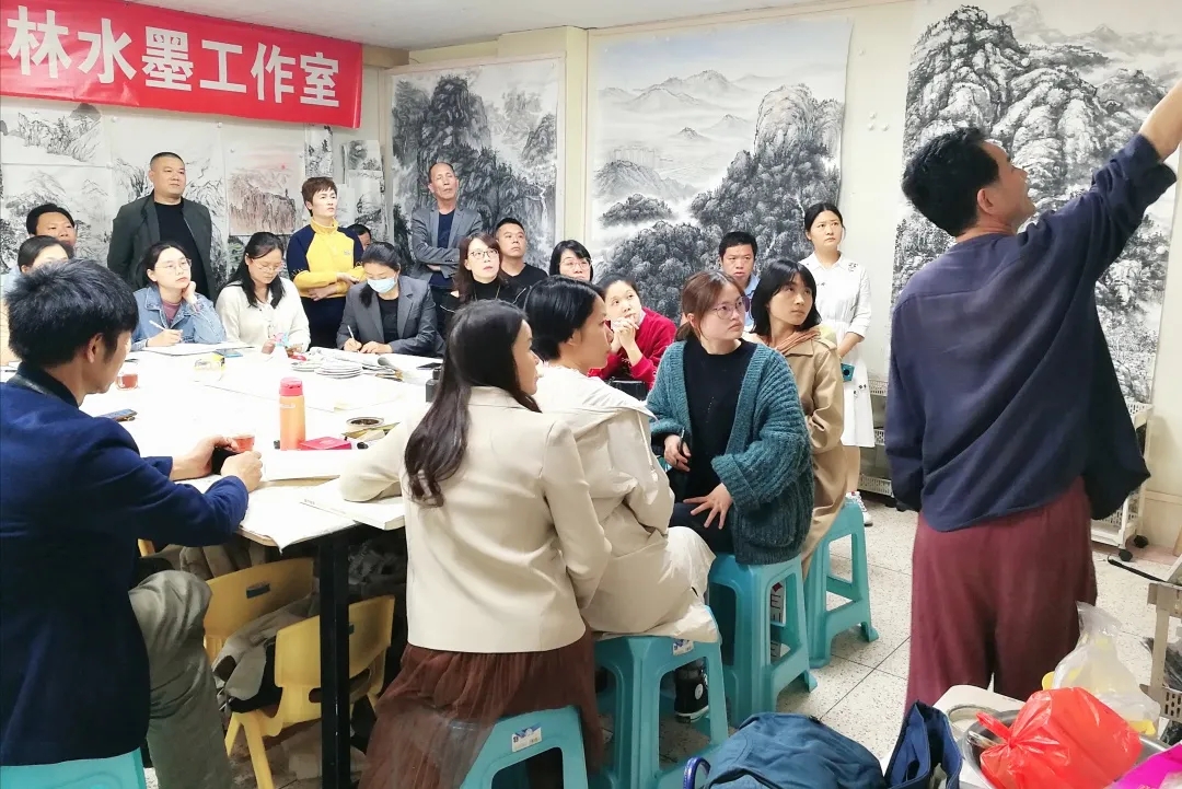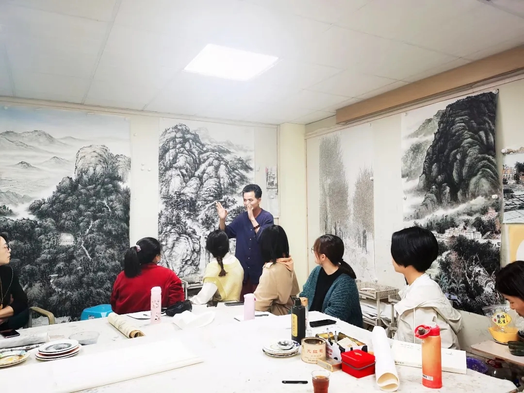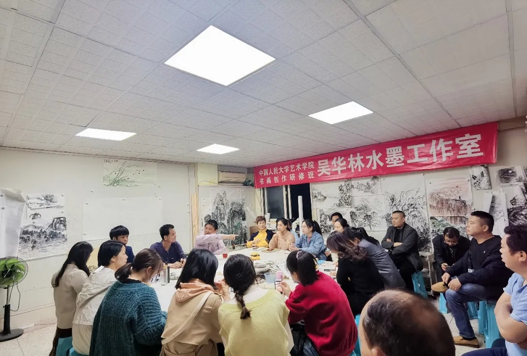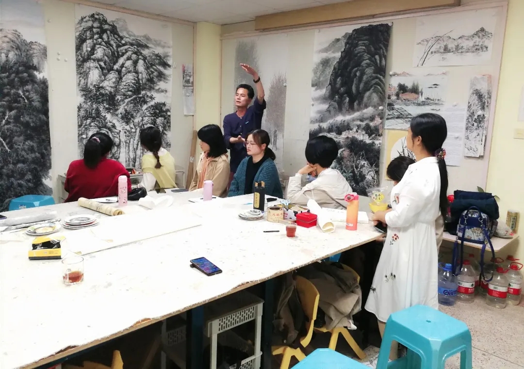 “風(fēng)恬日暖春色盎, 柳翠月明漳江藍(lán)”。4月7日晚,應(yīng)導(dǎo)師吳華林邀請(qǐng),著名畫(huà)家、美術(shù)評(píng)論家、藝術(shù)策展人吳秋雨先生蒞臨中國(guó)人民大學(xué)藝術(shù)學(xué)院書(shū)畫(huà)創(chuàng)作研修班吳華林水墨工作室,吳先生熱情洋溢地為工作室學(xué)員們進(jìn)行中國(guó)山水畫(huà)技法示范、學(xué)術(shù)指導(dǎo)、藝術(shù)交流。