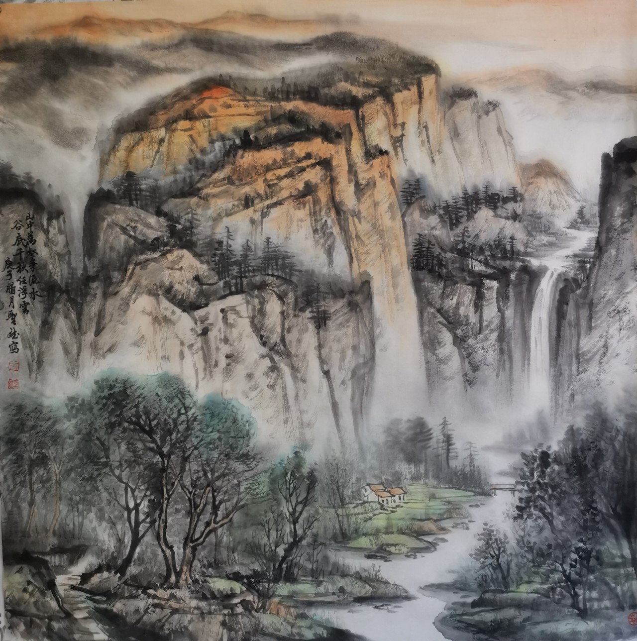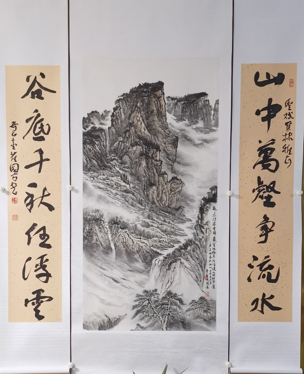 《山中萬壑爭流水 谷底千秋任浮雲(yún)》四尺中堂