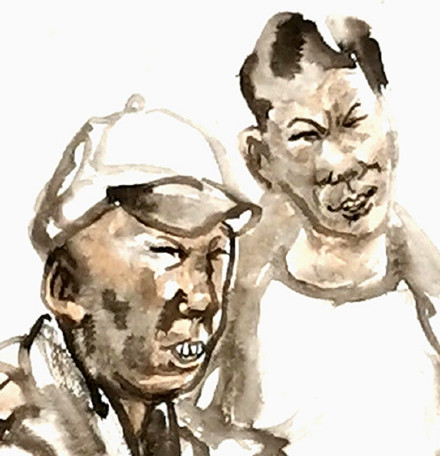學生名叫謝濟斌,畢業(yè)于我所任教的廈大美術系國畫專業(yè),在學時就喜畫人物,且對漫畫情有獨鐘。他畢業(yè)后沒機會從事專業(yè)工作,業(yè)余創(chuàng)作不輟,造型筆墨基本功嫻熟,寫實寫意兼能,善于準確捕捉人物神情姿態(tài)與不同身份特征,生動而有諧趣。他特別喜歡觀察社會底層民眾的生活,以在最凡常的題材里,反映幽默諧趣的美感,這點恰好與豐子愷相似。