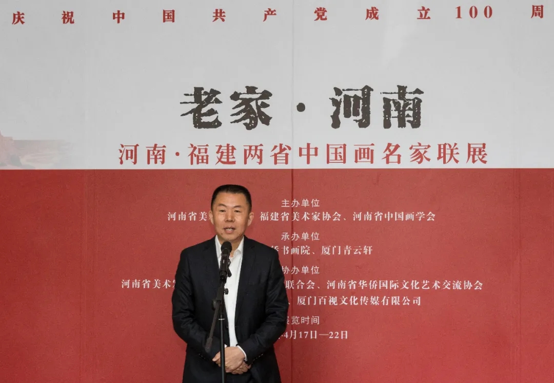 為慶祝中國共產(chǎn)黨建黨一百周年,4月17日-22日,由河南省美術(shù)協(xié)會和福建省美術(shù)家協(xié)會共同主辦,河南省華僑書畫院、廈門青云軒承辦,河南泉舜工程有限公司、廈門百視文化傳媒有限公司、河南省美術(shù)發(fā)展促進會協(xié)辦的“老家?河南”——河南福建兩省中國畫名家聯(lián)展暨福建名家中原行活動在河南隆重舉行。