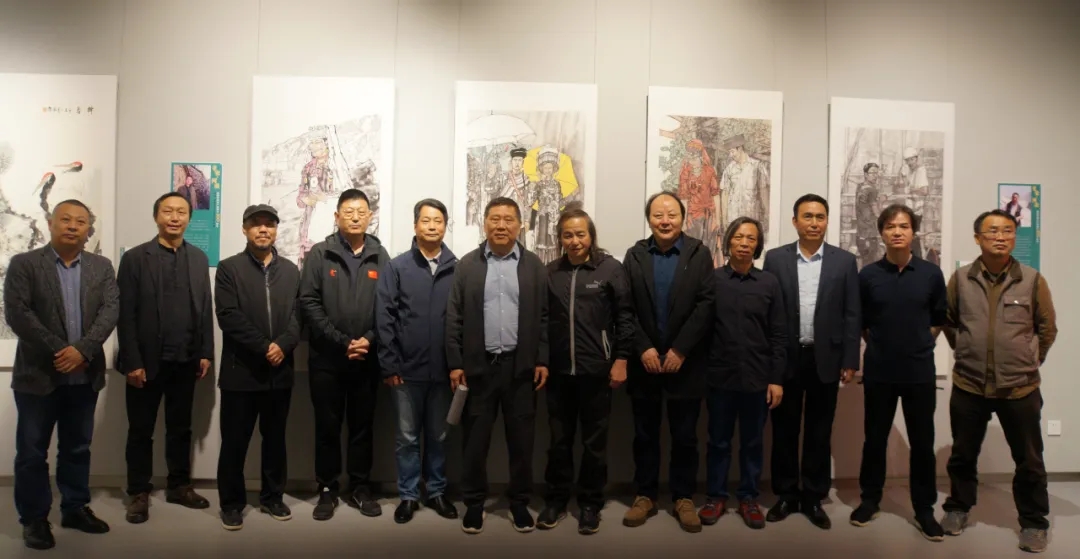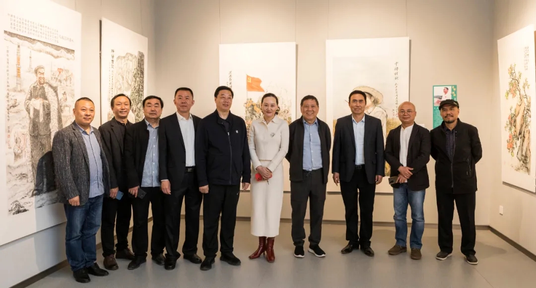 李文慧與馬國強、邵麗、劉杰、張毅敏、石品、陳文利、郭建明、曾國榮、賈發(fā)軍在展廳合影留念。