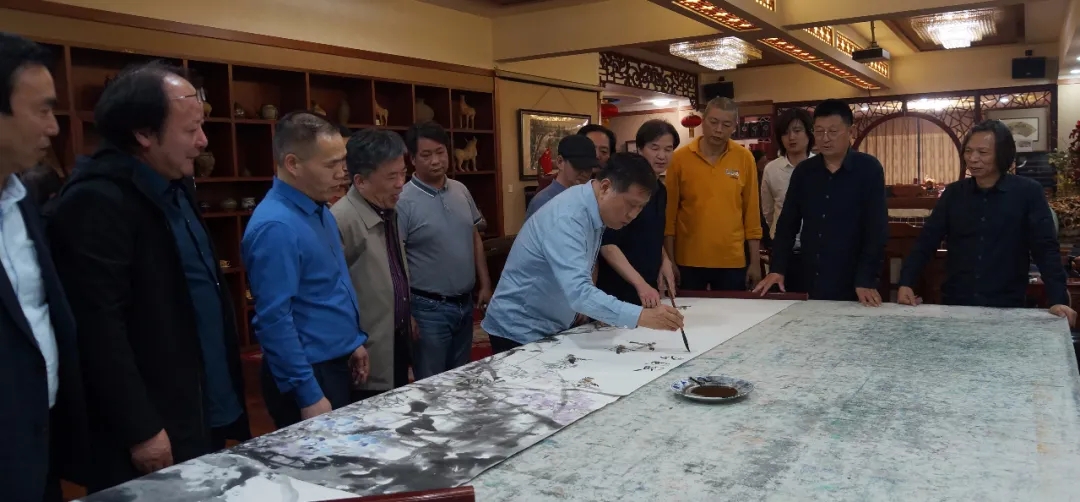 馬國強 、趙勝利、王新倫、胡益通、王守國、沈釗昌、鄧紹炳、林再福、林深、曾少林、郭建明、房巍等兩省畫家在河南省華僑書畫院創(chuàng)作交流。