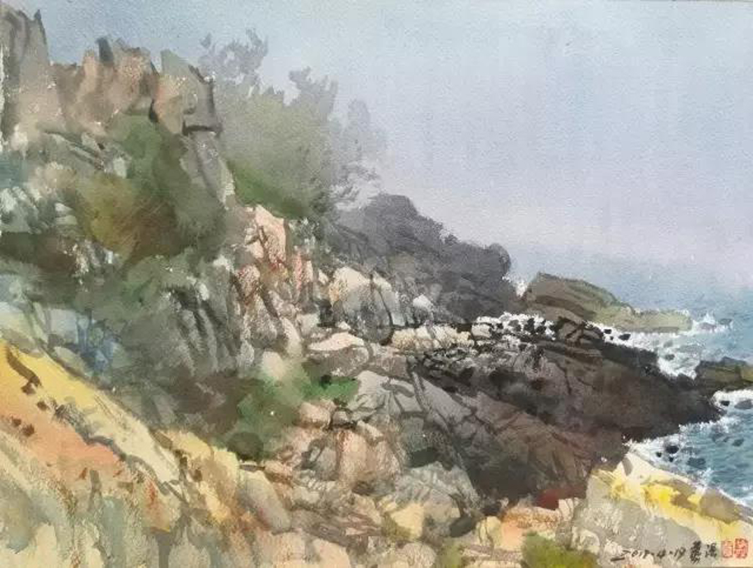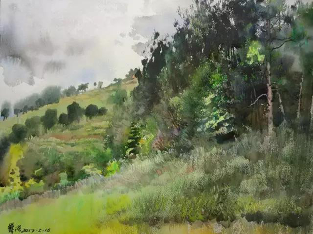 作者自述:境由心造。寫生是情與景、感性與理性的高度融合與共鳴。作為一個畫者,畫出自己所見、所感動的才是對大自然、對藝術(shù)、對生命的尊重與熱愛。法無定法,一個好的畫家能夠?qū)⒆约盒闹械倪@種感動通過畫筆制造成有意味的圖像,讓觀者獲得同樣的感受。這種樸素、奇妙的情感互動應(yīng)該就是美術(shù)的本源吧?