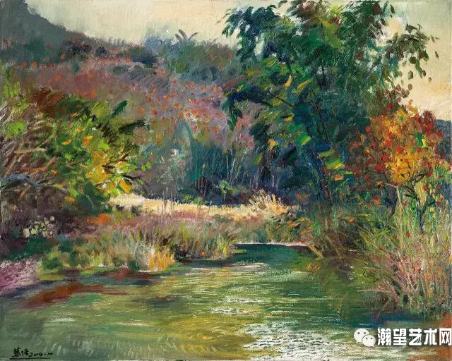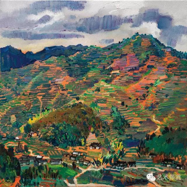 所以真正的藝術(shù)家必然是對(duì)精神財(cái)富的創(chuàng)造……”大浪淘沙,能在畫史上留下東西的藝術(shù)家都是精神的拓荒者。他們傾盡心血的創(chuàng)造,都是孜孜不倦的探求的結(jié)果。戴毅強(qiáng)深知繪畫的艱辛,他立足本土,眼觀世界,對(duì)大師的作品心慕手追。不僅從形式上把握,還從精神上進(jìn)行深度解剖,努力汲取其精華為己所用。當(dāng)完成了形式上的相對(duì)嫻熟,他始終清醒地遠(yuǎn)離“圖片時(shí)代”,堅(jiān)持不渝地寫生,沉浸在與大自然的會(huì)話中。大自然的瑰麗神奇和變化莫測(cè)都引起了他極大的熱情,于是乎他走南闖北,開(kāi)啟敏感的細(xì)胞去捕捉大自然的每一寸變化,并進(jìn)行比較和分析,然后讓敏銳的思想去發(fā)酵、去沉淀、去提升,最后才讓畫筆在多情的油布上歌唱、舞蹈,去追尋自己內(nèi)心世界的靈動(dòng),或者抒情,或者沉思,或者驚奇,或者迷茫,都一一傾泄而出。從而表達(dá)了他對(duì)大自然、社會(huì)、生命、靈魂的崇高理想,也就是對(duì)形而上的理解。