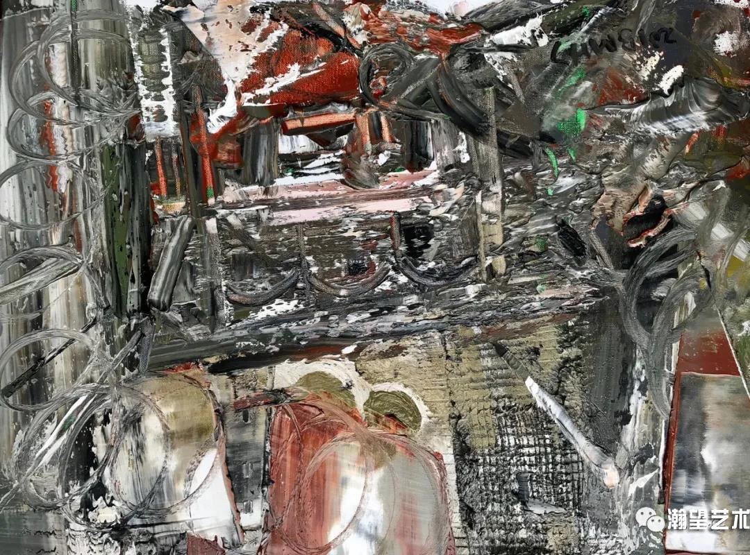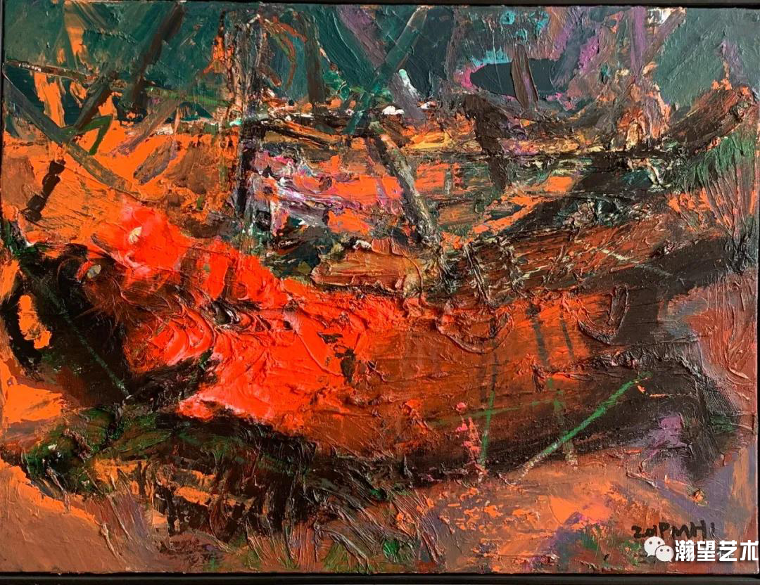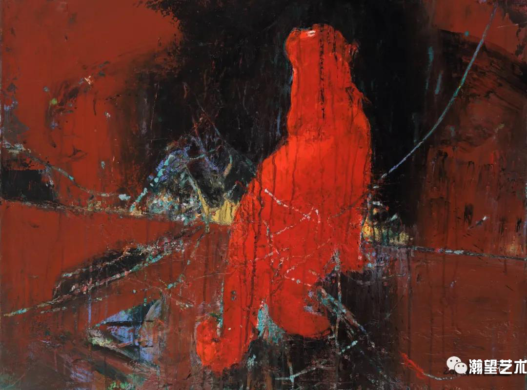 這種如血的紅色也是其《紅船》系列的主導(dǎo)色,在《紅船》中,濃烈的紅色經(jīng)由激情的刮、擦、涂、抹,如火焰般熊熊燃燒。