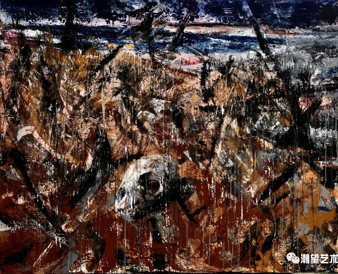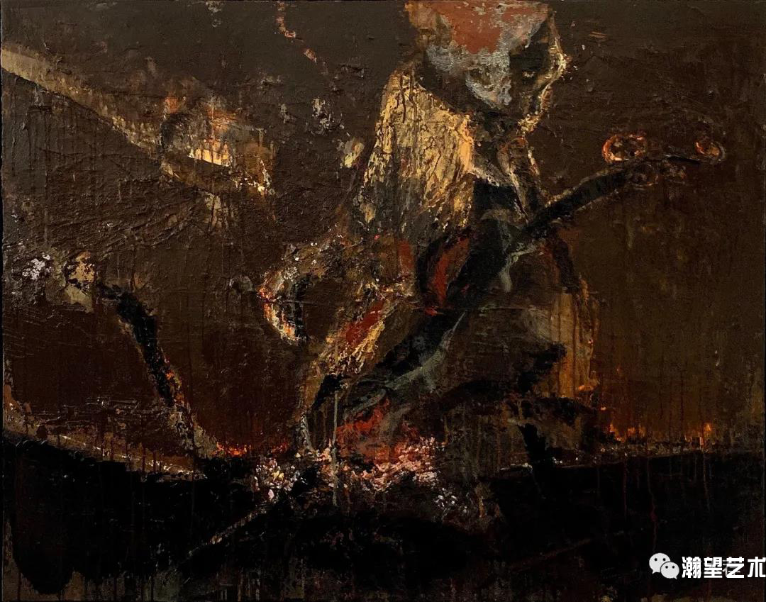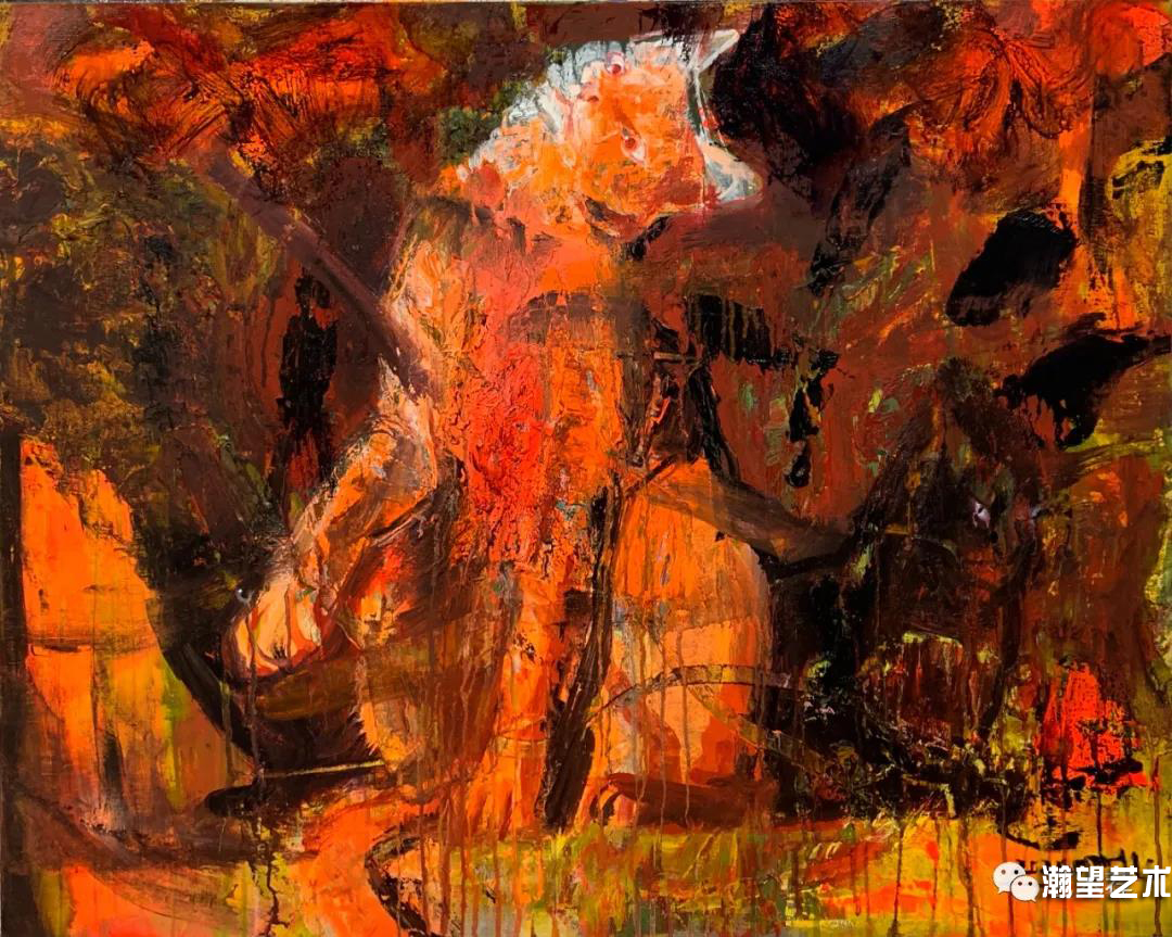 明華的筆觸含有情緒郁積或奔放的軌跡,他摒棄了古典繪畫的圓潤與溫和,選擇了剛性與凌厲,用直抵生命本質(zhì)的色彩和心靈跳蕩的筆觸宣泄自己烈焰般的激情。