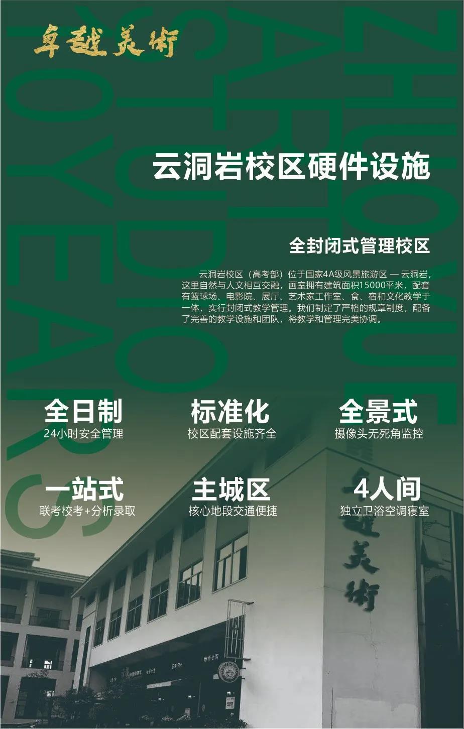 高考部(云洞巖校區(qū))位于國家4A級風(fēng)景旅游區(qū) — 云洞巖,建筑面積15000平米,配套有籃球場、電影院、展廳、藝術(shù)家工作室、食、宿和文化教學(xué)于一體,實(shí)行封閉式教學(xué)管理,是學(xué)藝術(shù)的理想圣地;高考部與全國美術(shù)高考領(lǐng)軍品牌- -白塔嶺畫室強(qiáng)強(qiáng)聯(lián)合,成立白塔嶺漳州校區(qū),實(shí)現(xiàn)資源互補(bǔ),共同促進(jìn),讓漳州學(xué)子在家門口就可以享受更優(yōu)質(zhì)學(xué)習(xí)平臺!