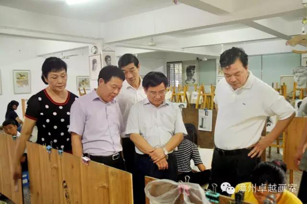 時(shí)任漳州市委書記陳家東(右一)及各部門領(lǐng)導(dǎo)蒞臨畫室調(diào)研指導(dǎo)