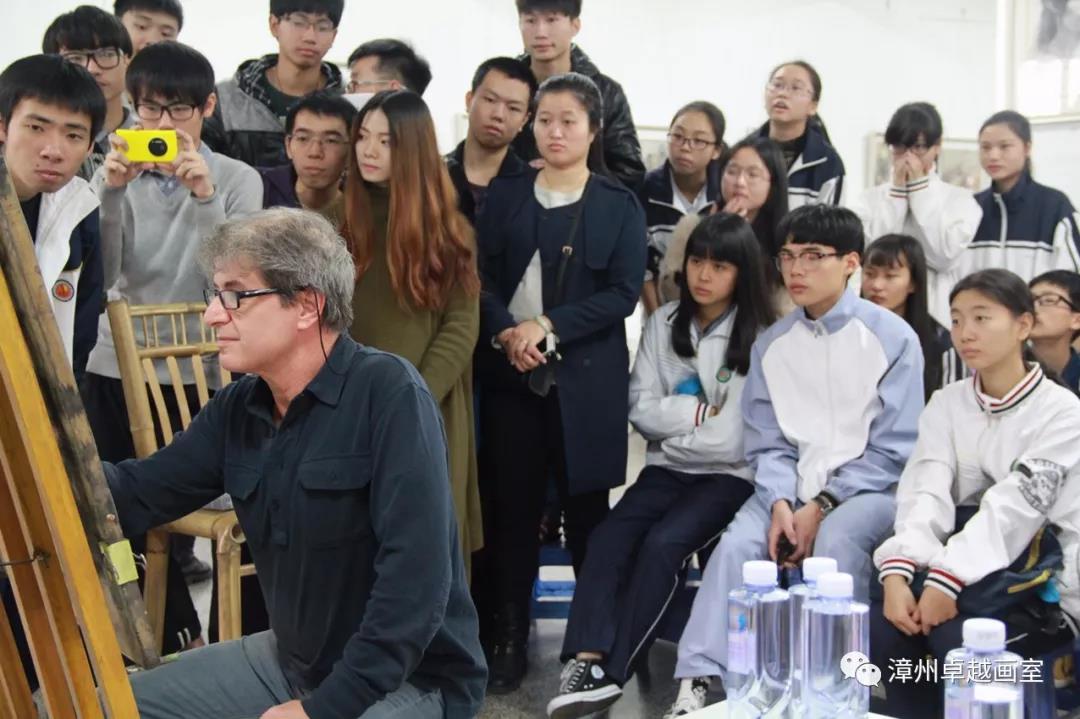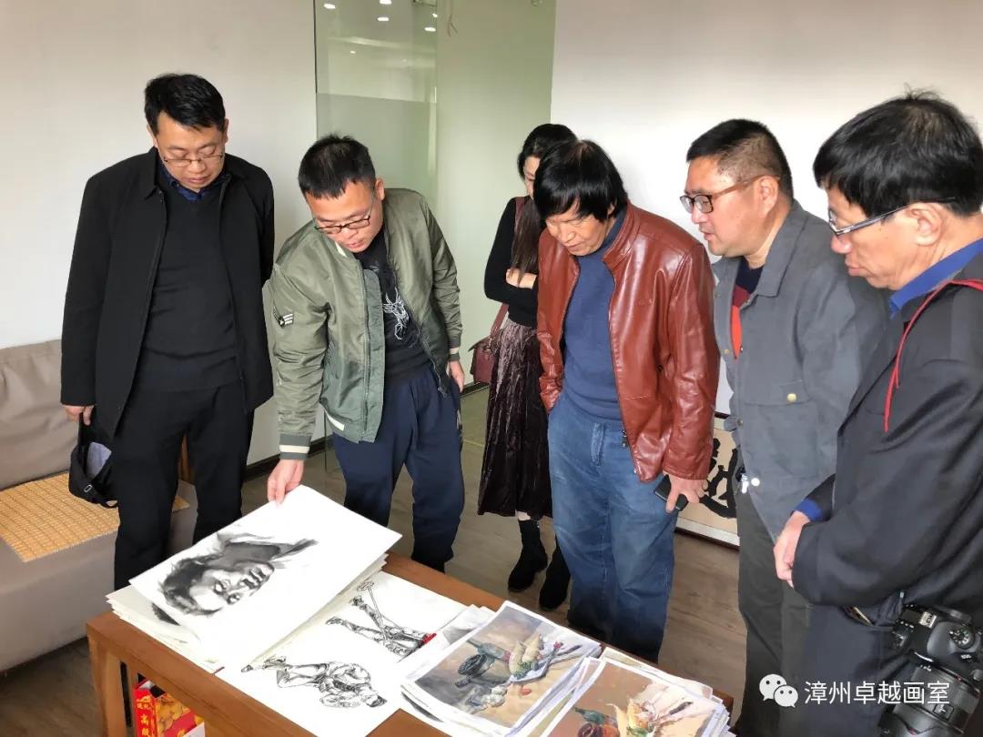 福建省美協(xié)人物畫副主任、漳州美協(xié)名譽(yù)主席黃啟根(中)蒞臨卓越畫室指導(dǎo)