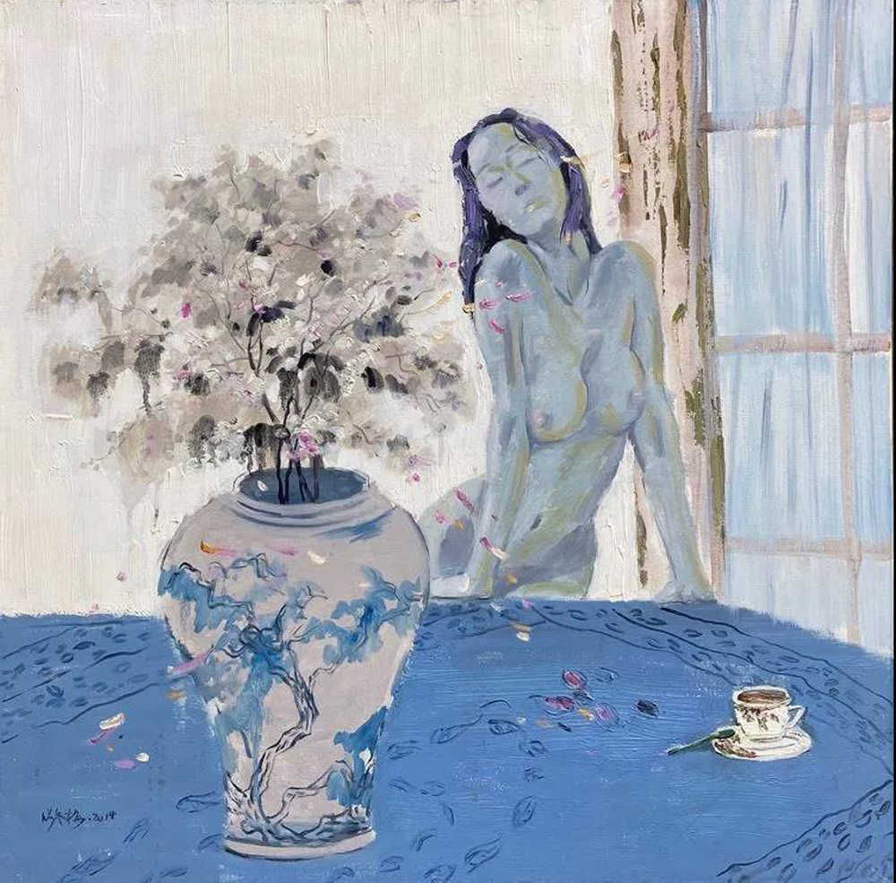 枯燥而冰冷的技巧、藝術(shù)規(guī)律被冬梅無情地拋棄,直接而性感的色彩如自在者而舞。印象、納比、中國畫、克里姆特……諸多元素被她悄然揉碎并譯成另一個自我。她對生活、對她周邊熟悉的甚至是她呼吸和皮膚所能感受到的事物,都是以陶冶性靈、抒發(fā)幽思的創(chuàng)作心態(tài)去做性情的吟詠。她有時渴望在造型上有所追求,有時在造境上強調(diào)新奇,也有時側(cè)重展示藝術(shù)的觀念。冬梅是嬗變的,她的繪畫就像色彩一樣,五顏六色,時而冰冷,時而溫暖;時而陽光明媚,時而陰云密布……她對繪畫探索的不同階段在發(fā)生著不同的變化,她在不斷地否定自己。她渴望并常常欣喜自己的畫面有所突破,但又時常惆悵和迷茫其中。