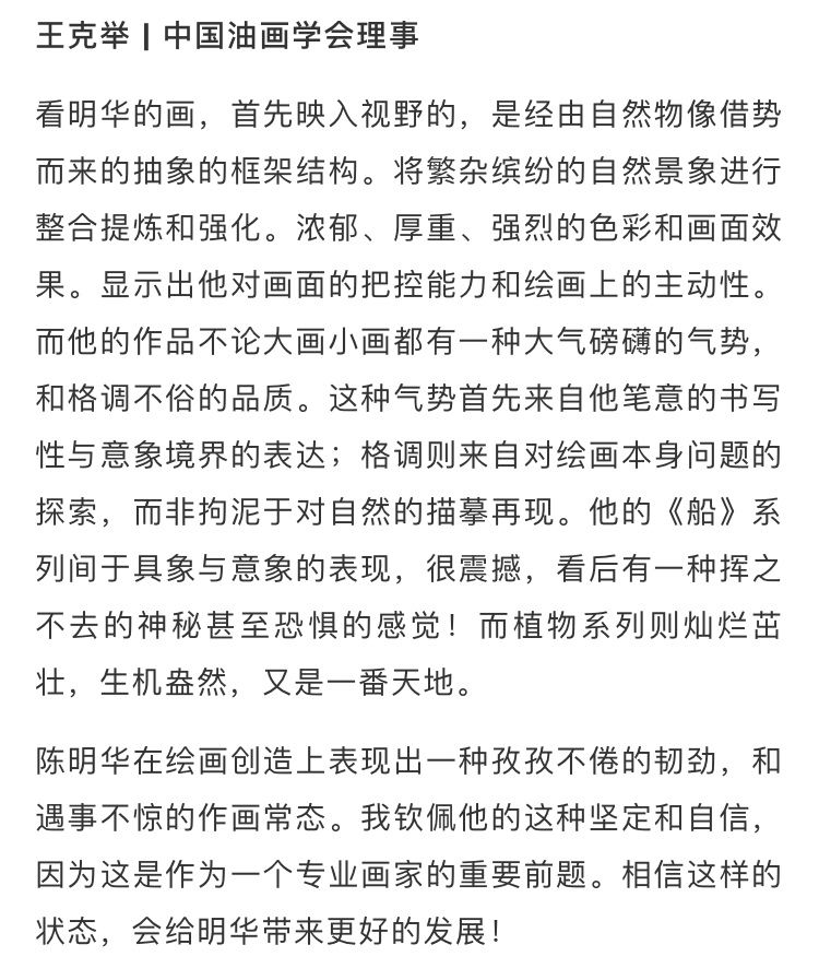 1962年出生于福建,現(xiàn)居北京。1982年考入福州大學廈門工藝美術(shù)學院。中國美術(shù)家協(xié)會會員,國家一級美術(shù)師,北京當代中國寫意油畫研究院研究員,成都大學客座教授,福建美術(shù)家協(xié)會油畫藝委會副主任,福建美術(shù)家協(xié)會水彩畫藝委會副主任,福建油畫學會理事,中國·東山油畫院院長。2021 《時節(jié)》獲“八閩丹青獎?第三屆福建省美術(shù)雙年展”金獎2020《看海》入選“文脈傳薪”中國寫意油畫學派作品展2020《島》《看?!贰熬瘛D式——首屆中國寫意油畫雙年展”2019年《風月》入選第十三屆全國美展進京作品展并獲優(yōu)秀獎2019《小巷》入選第十屆中俄文化大集中國油畫名家邀請展2019《秘境》入選文脈傳薪中國寫意油畫學派作品年展2018年《看?!啡脒x“和:當代中國小幅油畫展”2018《自由.神手》入選“傳神寫韻”中國寫意油畫學派人物專題研究展2018《秘境》入選文脈傳薪中國寫意油畫學派作品年展2018年《遠航》入選中國精神——第四屆中國油畫展2018年《子夜》獲第二屆亞洲美術(shù)雙年展優(yōu)秀獎2017年《遠航》入選中國寫意油畫學派名家“文脈傳薪”研究展”2017年《自由.神手》參加今日美術(shù)館《融—當代油畫語言研究展》2016年《紅船·遠航》入選全國工業(yè)美術(shù)作品邀請展2015年《紅船9》入選中國精神——第四屆中國油畫展(心像展)2014年《紅船》《暖風》獲“絲綢之路--福建省當代美術(shù)精品大展暨第十二屆全國美展福建省作品選拔展“雙優(yōu)秀作品獎”2014年《天堂.自由系列》參加中國《重構(gòu)意象》油畫邀請展2012年《紅船》入選鼎新華南-吾土吾民油畫邀請展2011年《山》油畫入選全國中青年藝術(shù)家推薦展2009年《記憶》獲建國60周年福建省當代美術(shù)精品大展最高獎1997年《黃昏》獲中國青年水彩畫大展學術(shù)獎
