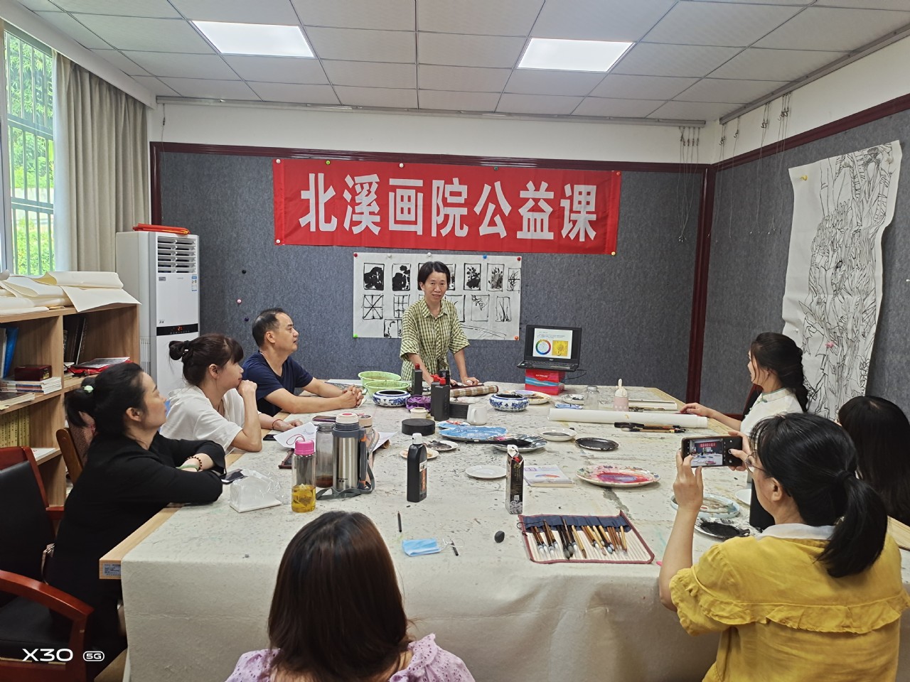 7月25日下午,北溪畫院舉辦了繪畫構(gòu)圖、色彩運用公益講座,鄭坤華和大家分享了繪畫畫面的空白形、黑白灰、點線面的處理。唐瑾瑜帶來了色彩的協(xié)調(diào)色、鄰近色和對比色,讓大家了解色彩的認(rèn)知和運用。增進(jìn)了大家相互間交流與學(xué)習(xí)。