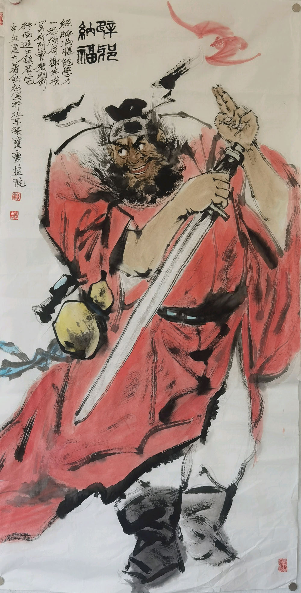 楊欽松是榮寶齋畫院劉大為班的班長,而我是尼瑪澤仁班的,我們是在同一個工作室學(xué)畫,執(zhí)行導(dǎo)師都是王宓和蔣為民老師,同學(xué)們都叫我?guī)熃?。他沒到之前,我們已聽蔣老師介紹將要來的這位班長。一見面,感覺第一印象是儒雅的外表、福建的語調(diào),溫和而淵博的談吐,倒像一位臺灣學(xué)者。他生長在福建東山島,彼岸就是臺灣南端,人杰地靈,天資聰慧。從小熱愛畫畫的他,特別喜愛古代梁楷的人物畫風(fēng),承古覓今,易道禪兼修,我問他為什么來北京學(xué)畫,他答:“追夢”。理解,我們都是把青春年華無私奉獻(xiàn)給祖國現(xiàn)代化發(fā)展事業(yè)的同齡人,自己不能左右工作和事業(yè),又有很強(qiáng)的社會責(zé)任感和使命感,只有臨近退休才可以自費出來學(xué)畫,來圓兒時的夢。