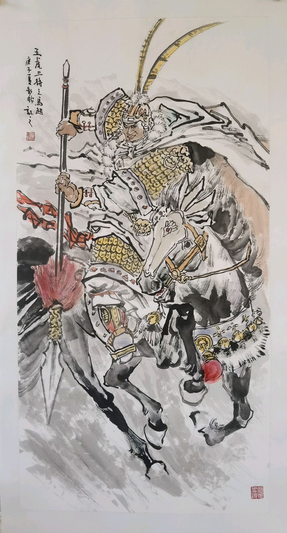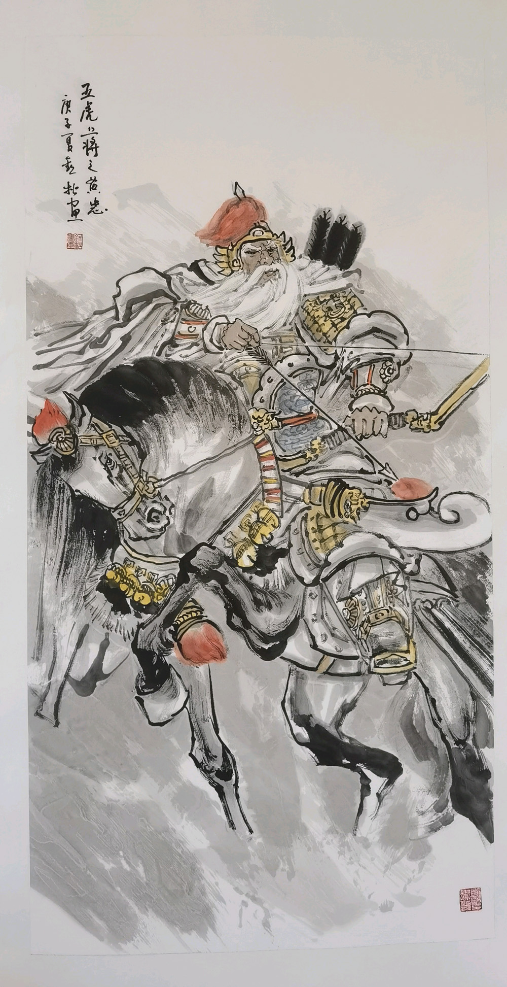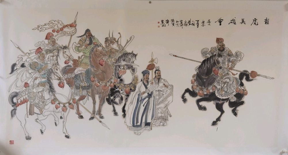 他的《草原雄鷹》和“五虎上將”系列作品,既體現(xiàn)了他對傳統(tǒng)文化的崇尚,又彰顯了個人英雄主義氣概,造型準(zhǔn)確,氣韻生動、筆墨虛實相生。那每一筆、每塊墨的頓挫與揮灑,彰顯了畫家對歷史英雄情結(jié)的偏愛與理想主義的追求。他不玩弄筆墨,而是有擔(dān)任重大歷史題材和現(xiàn)實題材的主題性創(chuàng)作的實力。在傳統(tǒng)技法與水墨的感知和運用上,展示出他的靈魂深處所蘊(yùn)含的境界與格局。
