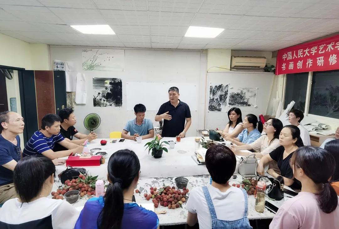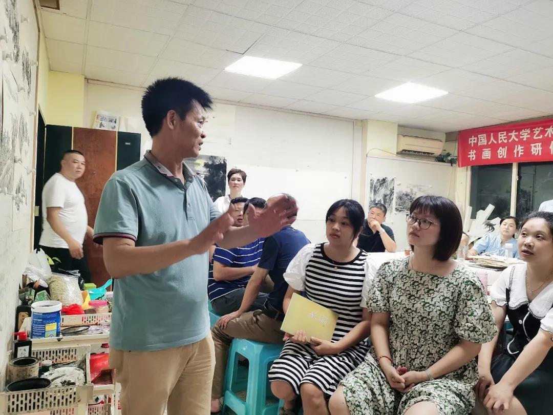 而后,吳建富先生就中國山水畫的寫生與創(chuàng)作,用線造型的特點,以及個人設色風格給大家詳細闡述講解,不時回答學員提出的問題。