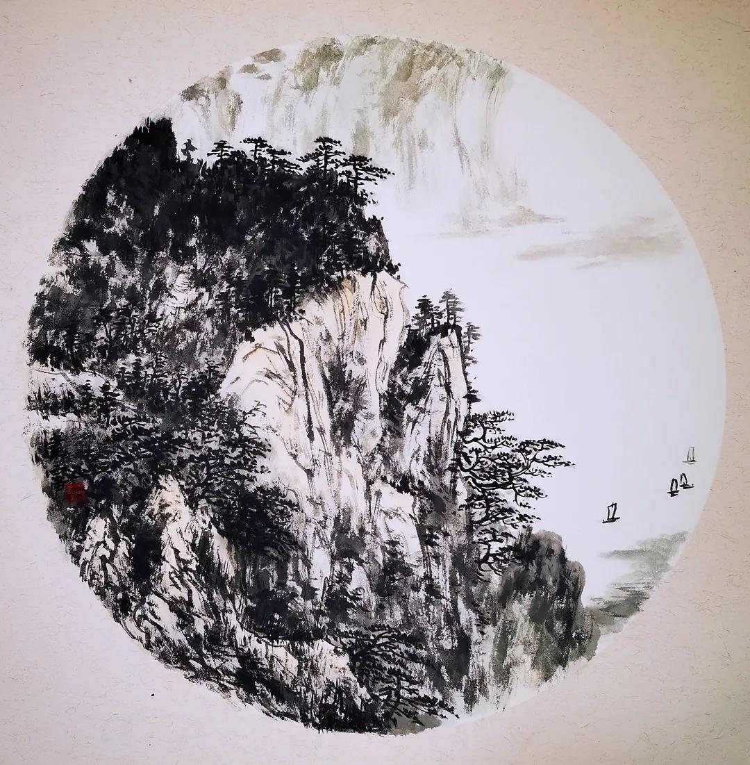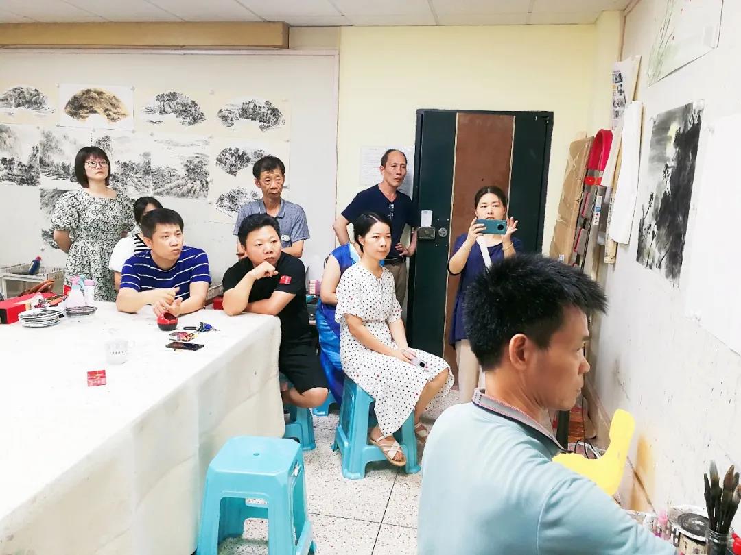 .20日晚,漳江兩岸,燈火輝煌,江面碧波蕩漾,倒映著闌珊燈火。老橋邊上,吳華林水墨工作室,人頭攢動,不時爆出陣陣掌聲。畫家吳建富先生今晚應邀做客吳華林水墨工作室,帶來近作三十幾幅與工作室學員講學交流并進行創(chuàng)作示范。