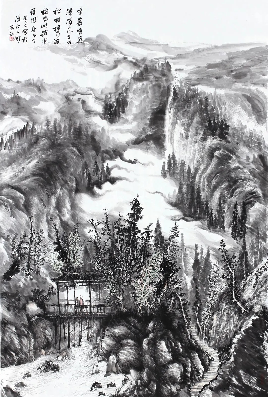 利用課間休息,吳華林老師對方惠仁老師的示范創(chuàng)作進(jìn)行了互動點評和技法分析,讓學(xué)員更清楚認(rèn)識方老師的用筆用墨特點和在構(gòu)圖中線與墨,點線面在一幅作品中的經(jīng)營及對比運用。