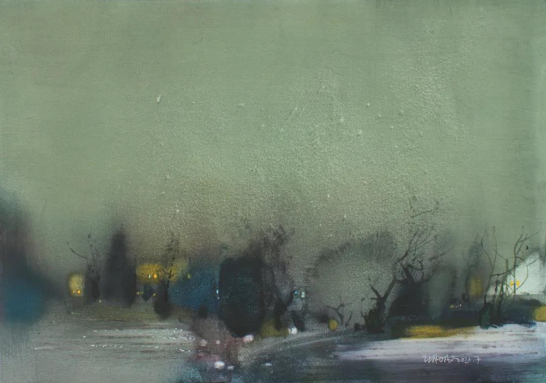 《致靜·昔境》,紙本水彩,53.5x76.3cm,2021年