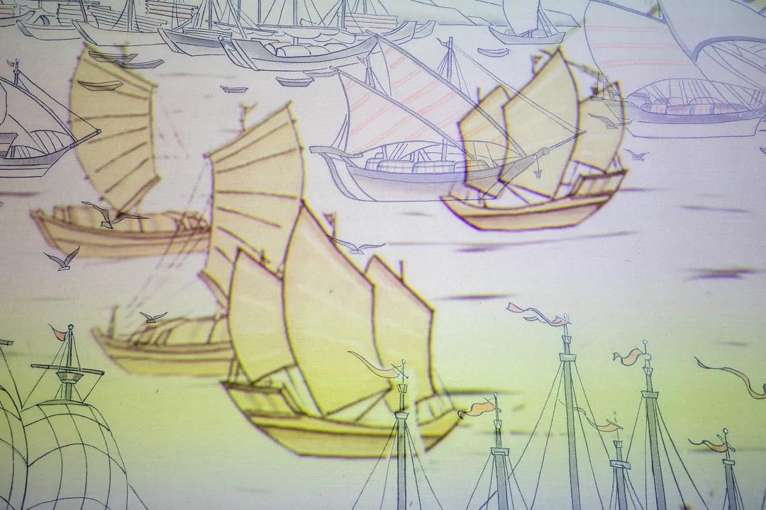 如今,《刺桐夢(mèng)華圖》被永久收藏于泉州海外交通史博物館,放大后的復(fù)制品被懸掛在海交館內(nèi),館方還通過投影讓整幅畫動(dòng)了起來。在這里,一眼便能望穿千年前刺桐港、刺桐城無盡的繁華。