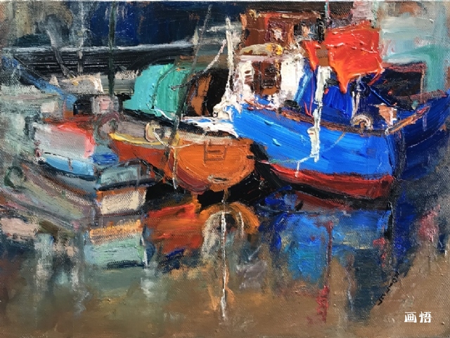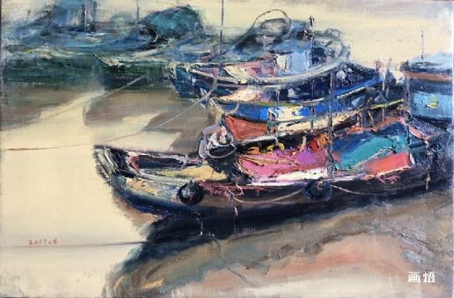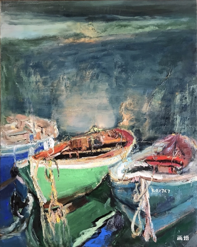 她畫的船,亦如智者充滿焦慮地在江心低調地跋涉與咆哮!天黑下來,像一只勞累的眼簾在月光中睡熟!但黎明翻身的同時,王聰把世俗變成一劑猛烈的春藥,指引著親愛的讀者瞬間欣喜地看到畫面背后那雙改變世界的,魔術師雙手……。