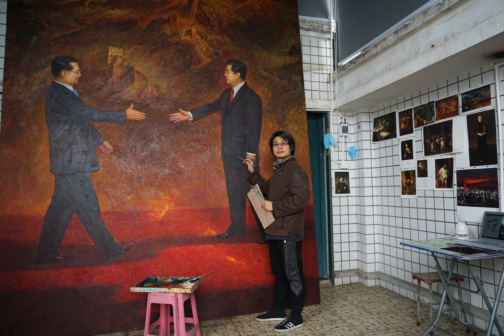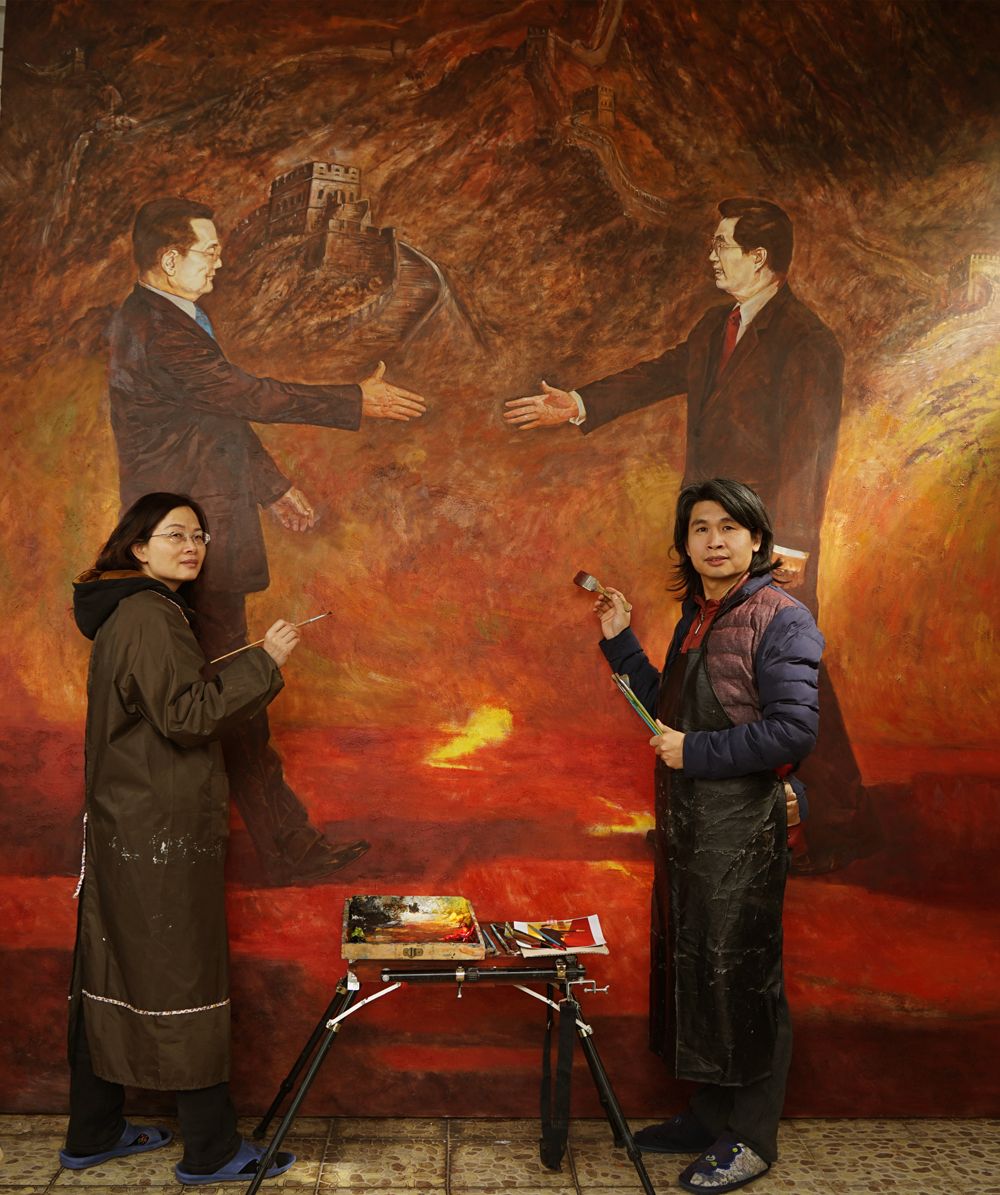 工程歷時三年,從草圖申報、評審,最終從數(shù)千件作品中經(jīng)過層層選拔選出一百多幅精品力作長期展覽和收藏于中國共產(chǎn)黨黨史館。王裕亮教授領銜創(chuàng)作的作品《破冰之旅---胡錦濤會見連戰(zhàn)》入選這一國家重大美術創(chuàng)作工程。