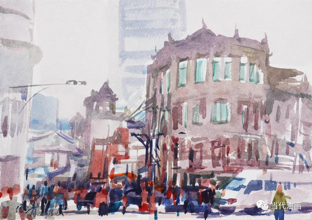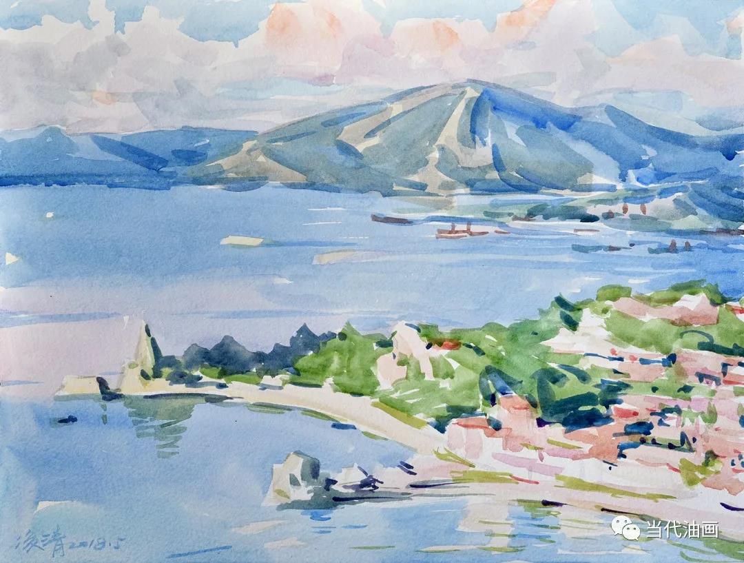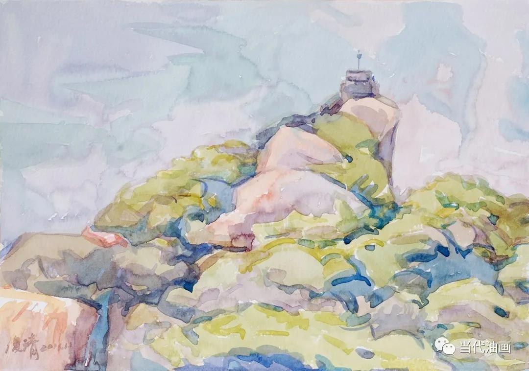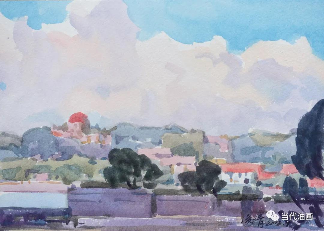 從油畫跨到水彩卻從“淡彩”做起,極迅速地熟悉了水的性能和水彩的輕快用筆,進而在小幅中傾瀉謳歌陽光的熱情,這是卓行成效的開局氣象。