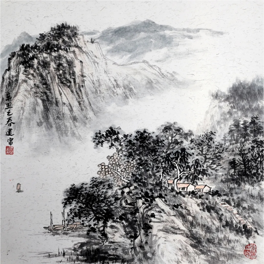 吳建富自幼興趣畫畫,曾到魯迅美術(shù)學(xué)院山水畫研修班進(jìn)修,受教于中國著名人物畫家、魯迅美術(shù)學(xué)院院長王盛烈教授和山水畫家孫恩同教授,就讀期間又得益于周曉光、辛鑒銘、李剛等諸位名家的指點(diǎn)。經(jīng)過正規(guī)科班的深造,兩年期間臨摹了大量宋元明清山水名作,打下了扎實(shí)基礎(chǔ),又跟導(dǎo)師們游歷名山大川,寫生自然之境,對(duì)自然與紙上筆墨語言有了深入見解,逐漸形成自家面貌。
