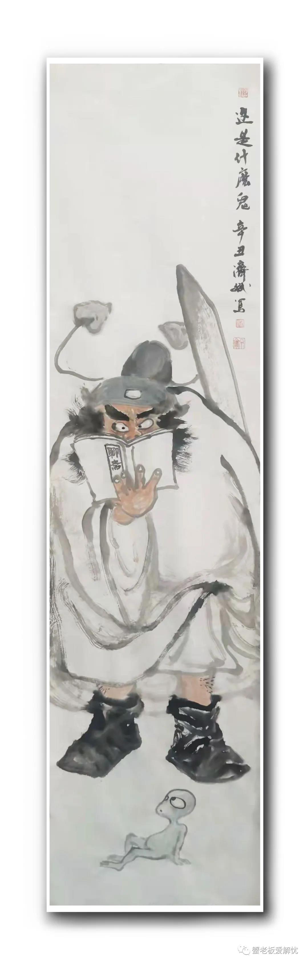 蟹老板卻希望,他筆下的鐘馗應(yīng)該是一身正氣,除了能夠驅(qū)魔捉鬼以外,還是個(gè)詼諧幽默的充滿人間煙火味的大叔。于是就有了以下具有一定現(xiàn)實(shí)主義情懷的鐘馗系列。