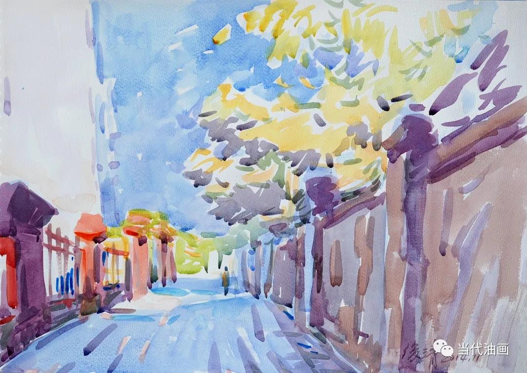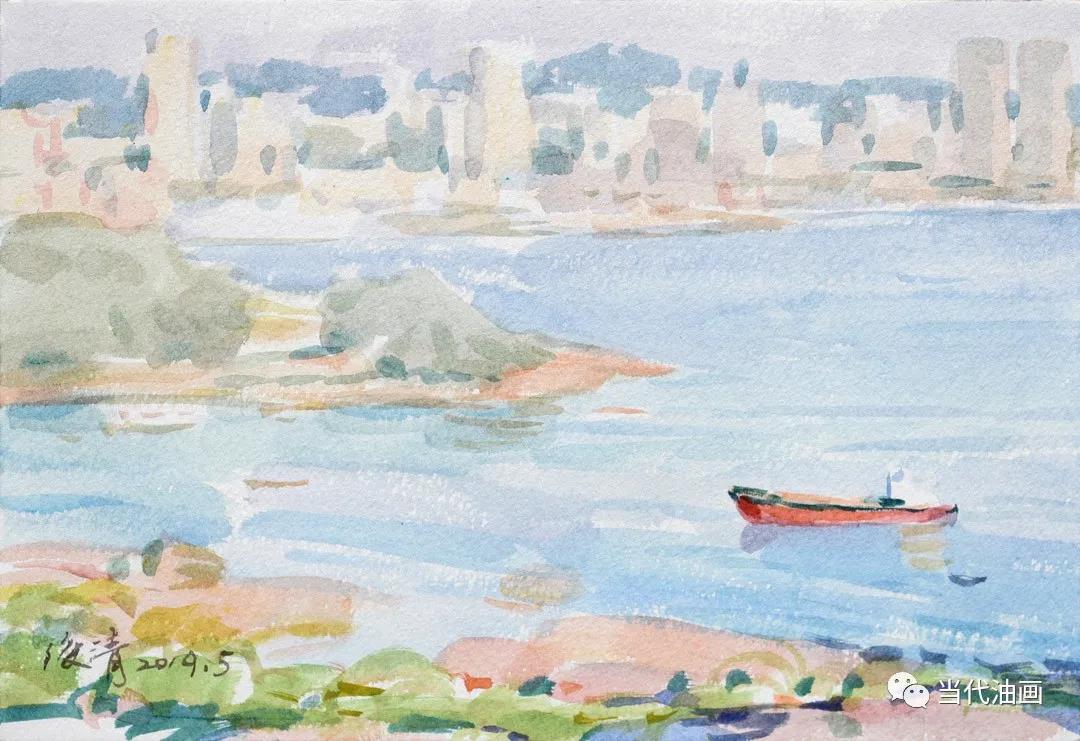 從油畫跨到水彩卻從“淡彩”做起,極迅速地熟悉了水的性能和水彩的輕快用筆,進而在小幅中傾瀉謳歌陽光的熱情,這是卓行成效的開局氣象。