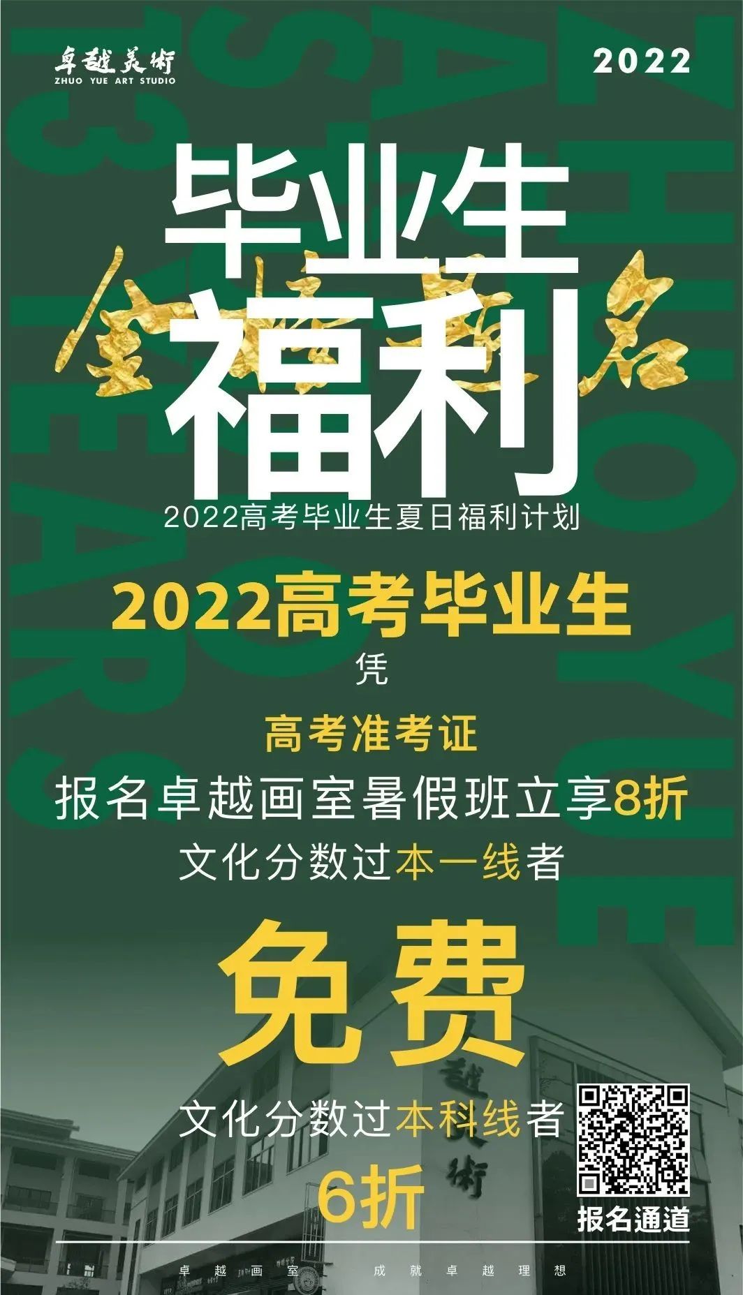 至創(chuàng)辦以來屢獲碩果,2012年陳玳鵬同學(xué)取得中國美院全國第2名,2014年沈晉同學(xué)取得中央美院全國第2名, 2015年22人次專業(yè)通過中國美術(shù)學(xué)院,林欣同學(xué)取得北京電影學(xué)院全國第6名... 2019年福建省聯(lián)考孫伯淵同學(xué)取得全省第12名,2020年專升本李煜翎以專業(yè)287分(滿分300)奪得全省第1名,2021年中職生王曉薈專業(yè)奪得188高分(滿分200),2022年福建省聯(lián)考黃仲麟同學(xué)取得全省第31名、顏一心取得全省第63名...等佳績, 現(xiàn)已為漳州地區(qū)輸送近千名中央美院、中國美院、天津美院、北京服裝學(xué)院、北京電影學(xué)院、廈門大學(xué)、福建師范大學(xué)、廈門工藝美術(shù)學(xué)院等重點院校學(xué)生,卓越美術(shù)是為漳州學(xué)子實現(xiàn)美術(shù)夢想的搖籃,讓我們共同努力,成就未來!
