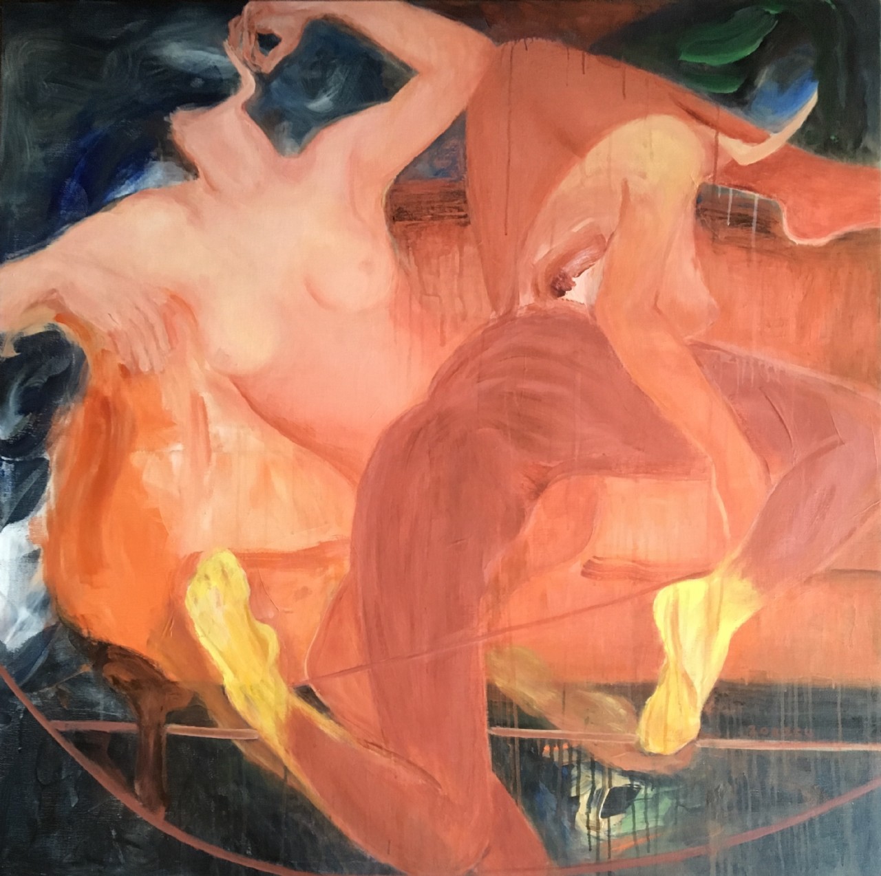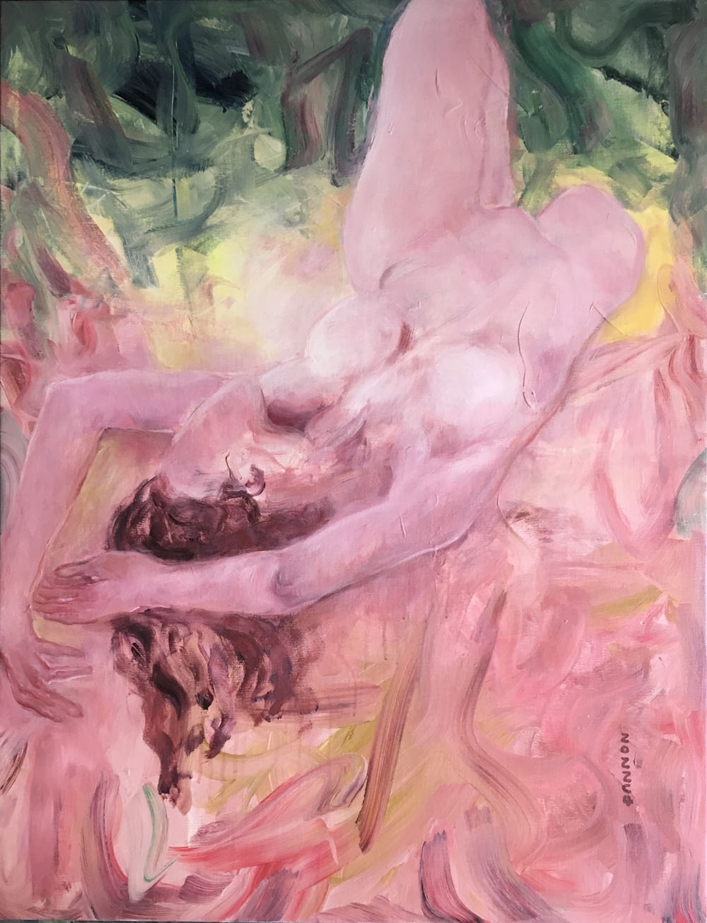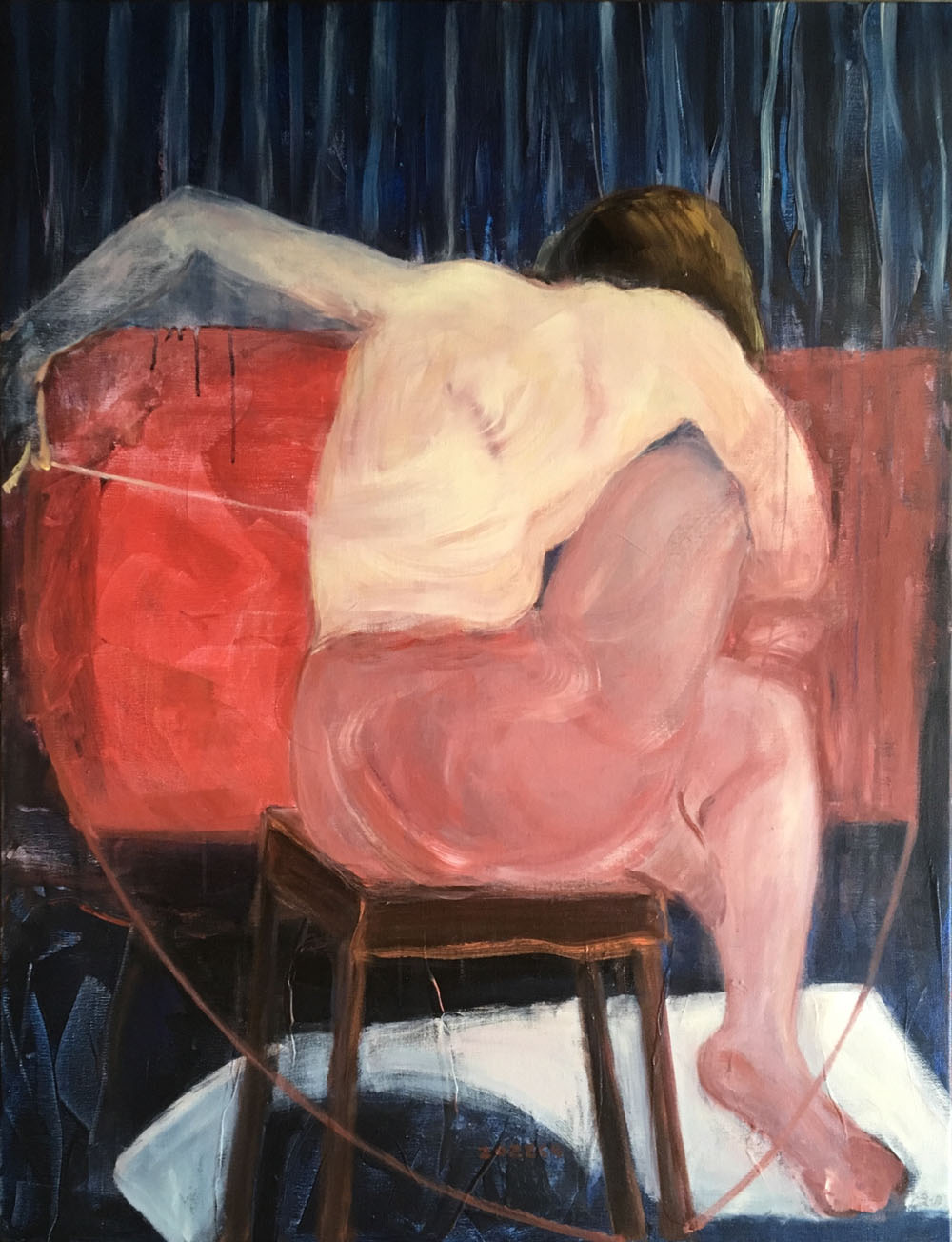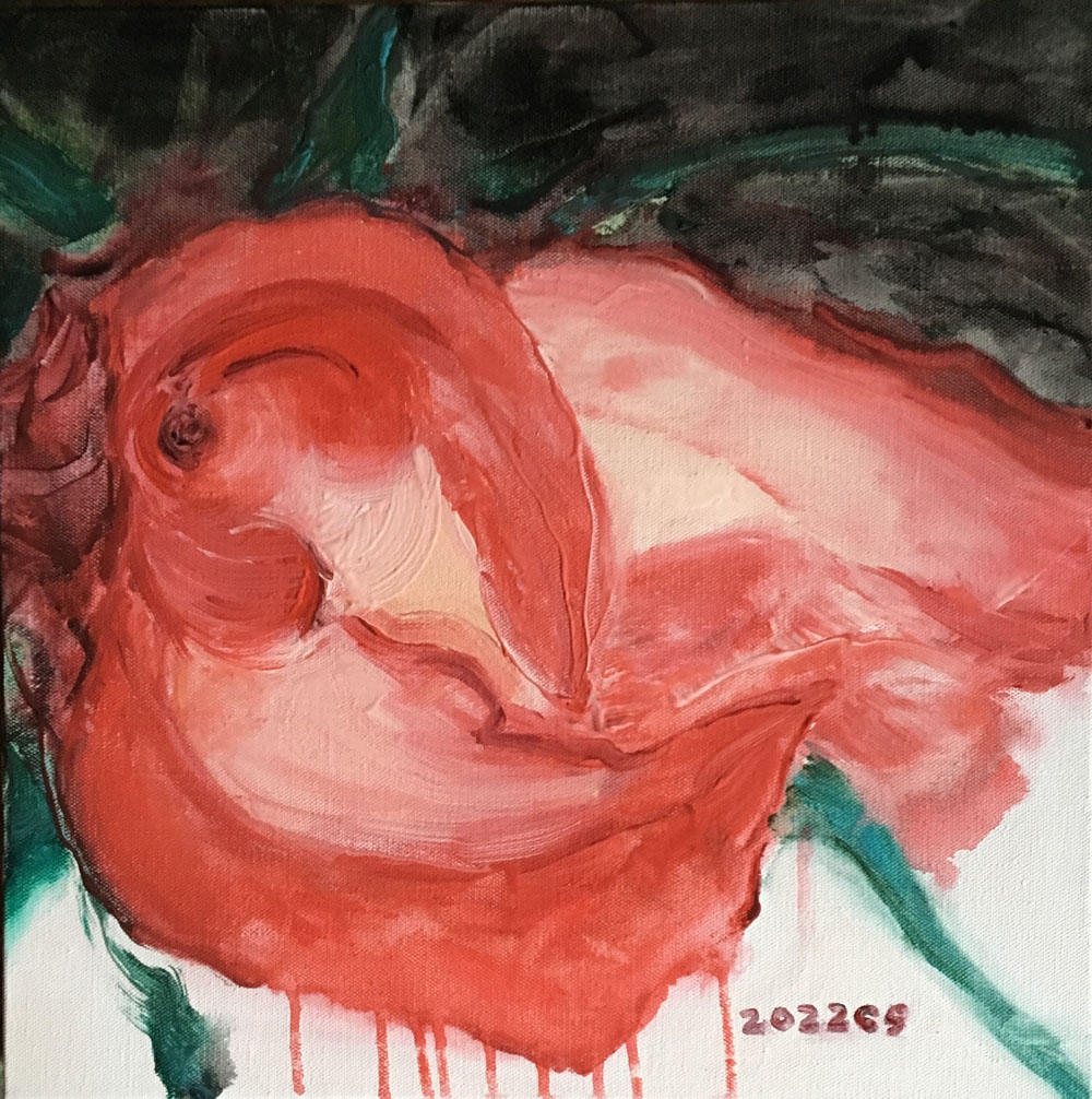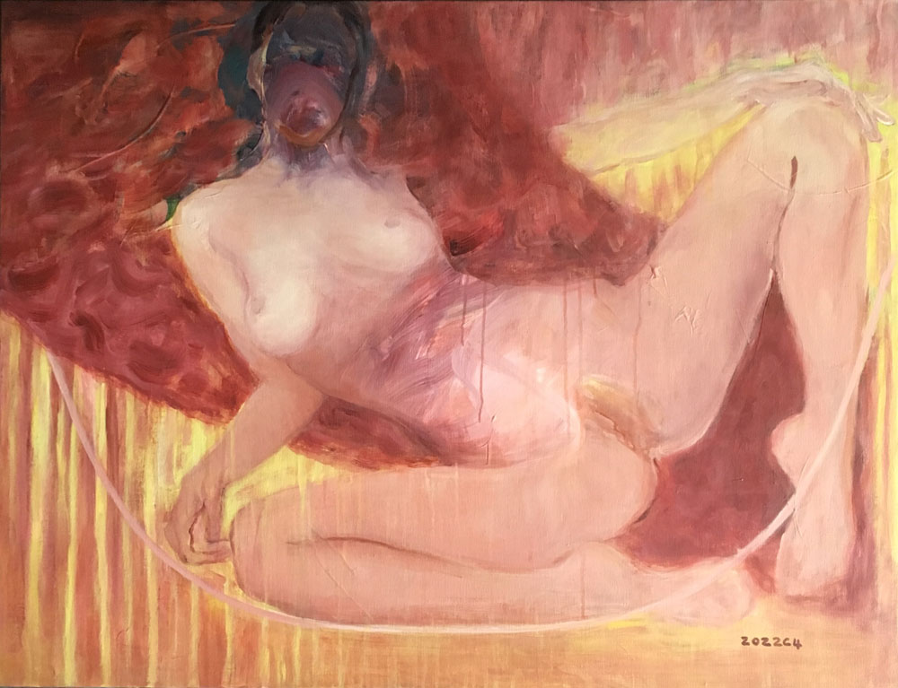 王聰柔弱,純粹,簡(jiǎn)單,見(jiàn)生人怯生生的,典型的江南女子。我在無(wú)以計(jì)數(shù)的畫(huà)畫(huà)人堆里把她的畫(huà)刨出來(lái)。她的畫(huà)作,與她的整個(gè)人,形成強(qiáng)烈反差:勇猛,暢快,大氣,自信,誠(chéng)實(shí)。像一個(gè)玩嗨了的孩子沉浸在自我享受中而忘掉了外部的一切。人性之情欲在私密空間中奔騰狂歡,非一般裝模作樣的世人很難窺探到這番情境。她的畫(huà)作顯得有些不合時(shí)宜,她的秘藏在心底最深邃處的情欲幻想,不經(jīng)意被人看到了,你猛然回頭,會(huì)發(fā)現(xiàn)這是一件既欣喜又難為情的大事!這種畫(huà)作,不像是在一個(gè)傳統(tǒng)意識(shí)濃烈,虛情假意盛行的當(dāng)下現(xiàn)實(shí)生活中能見(jiàn)到的真實(shí),是她沒(méi)被教化沒(méi)被擠壓過(guò)的天真流露。我長(zhǎng)期行走在大片的沙礫堆中,發(fā)現(xiàn)她的畫(huà)作在那里孤獨(dú)地閃著光,有些剌眼,但令人動(dòng)心。