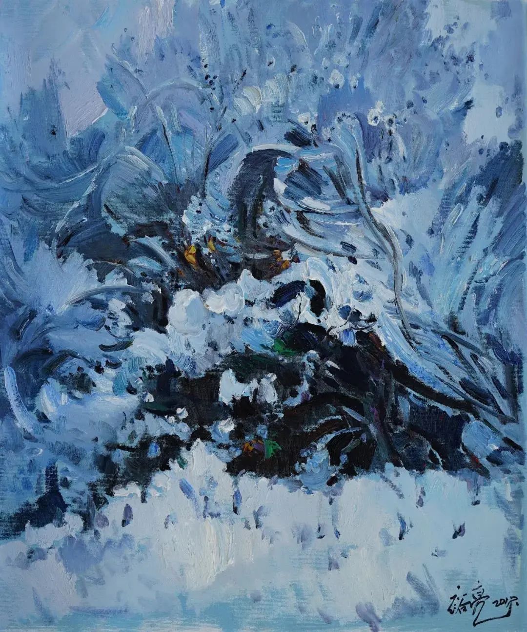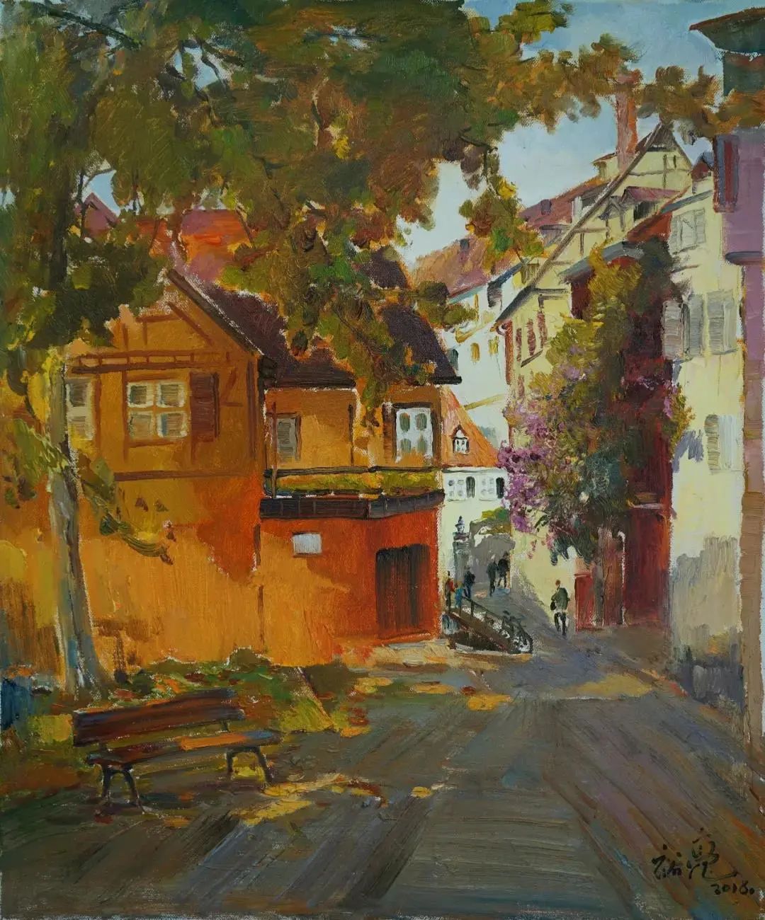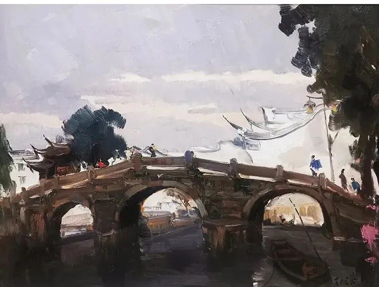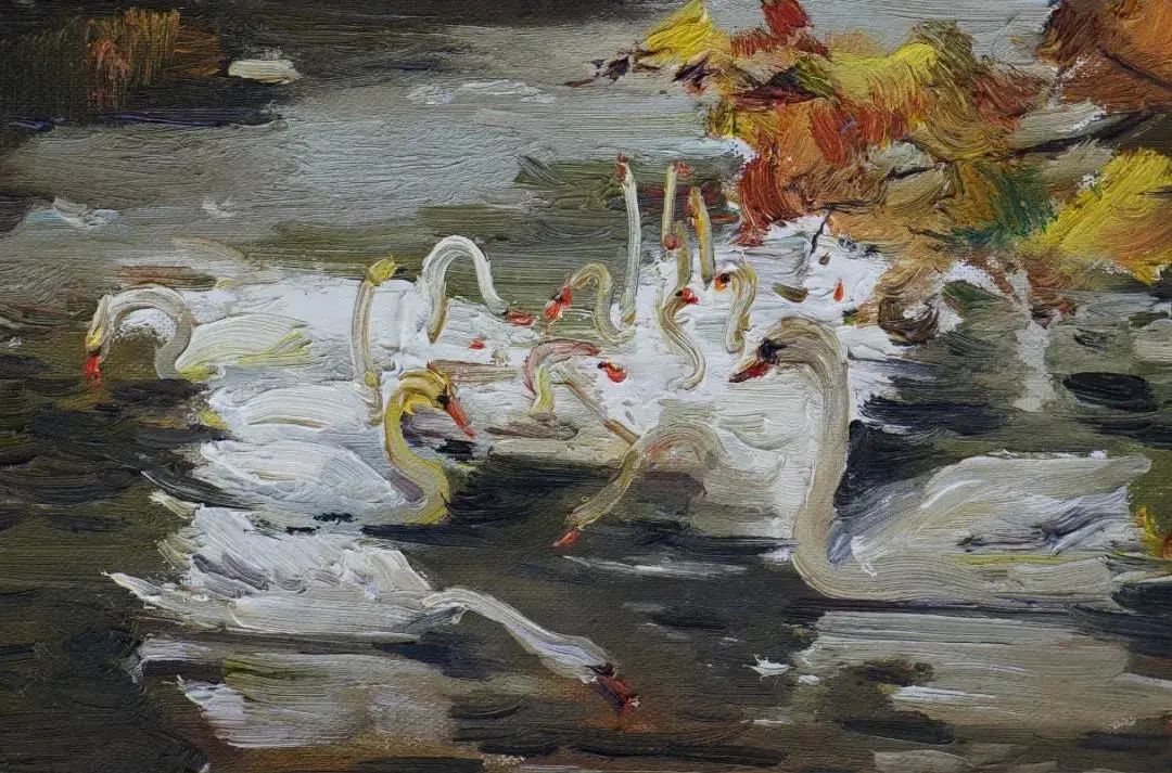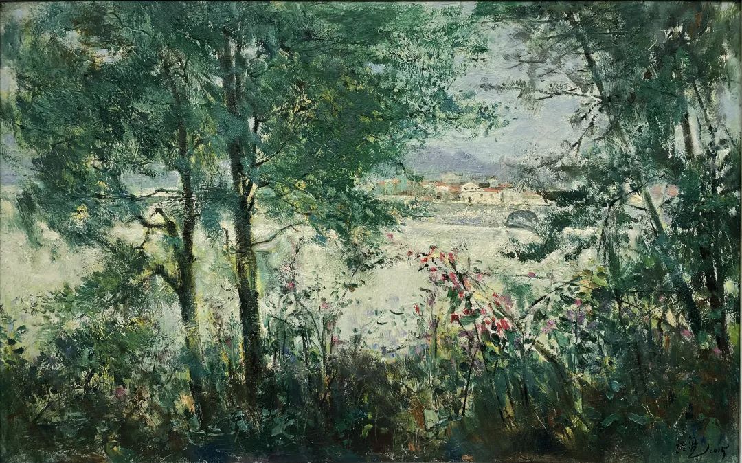 福建省缺少一所純粹的專(zhuān)業(yè)美術(shù)學(xué)院,這在無(wú)形中制約著福建美術(shù)事業(yè)的發(fā)展,特別是在人才隊(duì)伍的培養(yǎng)建設(shè)、學(xué)理研究的系統(tǒng)化、學(xué)術(shù)梳理的深度化等方面,相比起廣東、浙江等這些有著美術(shù)學(xué)院的省份,福建美術(shù)事業(yè)的繁榮發(fā)展要付出更多的心血與心力。福建師大美術(shù)學(xué)院不是專(zhuān)業(yè)美術(shù)學(xué)院,而是綜合型大學(xué)所屬的美術(shù)院系,但它是福建美術(shù)人才的重要搖籃,發(fā)揮著專(zhuān)業(yè)美術(shù)院校的部分作用。福建師大美術(shù)學(xué)院由留法歸來(lái)的著名油畫(huà)家謝投八先生于1941年創(chuàng)辦,一直以來(lái)有著優(yōu)良的西畫(huà)傳承。早期的優(yōu)秀西畫(huà)老師有留法的謝投八、留日的吳啟瑤、留菲的葉淑華等,他們教授地道的西洋繪畫(huà)技巧,奠定了師大美院的西畫(huà)學(xué)科教學(xué)基礎(chǔ)。20世紀(jì)60年代到80年代期間,又有來(lái)自浙江美院(現(xiàn)中國(guó)美院)的謝意佳、林以友、高一呼、楊思陶等老師前來(lái)任教,他們不僅帶來(lái)了前蘇聯(lián)的現(xiàn)實(shí)主義藝術(shù)觀(guān)念和表現(xiàn)技法,更重要的是,在原來(lái)的基礎(chǔ)上形成了福建師大美院的現(xiàn)實(shí)主義教學(xué)與創(chuàng)作觀(guān)及詩(shī)性寫(xiě)生的教法,形成了較完善的西畫(huà)教學(xué)體系,在省內(nèi)發(fā)揮著重要的作用,一直影響至今。福建師大美院這一傳承有序的油畫(huà)體系,一直是福建油畫(huà)發(fā)展繁榮的重要發(fā)源地。裕亮作為地道的福建師大美術(shù)學(xué)院人,他從本科、碩士、博士到留校任教,一直在這所學(xué)校學(xué)習(xí)生活,自然也就深深地烙上了母校文脈的印記。他在這樣的文脈與校風(fēng)里成長(zhǎng),秉承前輩們樸素的藝風(fēng),腳踏實(shí)地進(jìn)行油畫(huà)創(chuàng)作的探索。記得十年前裕亮去澳大利亞留學(xué),回來(lái)后,即在省美術(shù)館舉辦了個(gè)人畫(huà)展。記憶里依然記得他那批在澳大利亞寫(xiě)生的作品,整體華麗透明,在色彩的豐富性與畫(huà)面色調(diào)的統(tǒng)一性上有著鮮明的個(gè)人特征,有著太平洋島國(guó)的清新與明亮。那次留學(xué)是裕亮藝術(shù)生涯里一個(gè)轉(zhuǎn)折性的經(jīng)歷,此后他的藝術(shù)視野明顯更加開(kāi)闊,繪畫(huà)技法也有了不斷的提升,更重要的是藝術(shù)觀(guān)念、藝術(shù)思維產(chǎn)生了較大的轉(zhuǎn)變,逐漸邁向成熟,具有相對(duì)穩(wěn)定的藝術(shù)思考方向。時(shí)隔十年后,裕亮前往油畫(huà)的故鄉(xiāng)--歐洲訪(fǎng)學(xué),“此次近一年的訪(fǎng)學(xué)既是交流,更是朝圣之旅,收獲良多”,裕亮說(shuō)。與歐洲特別是與德國(guó)藝術(shù)家的交流,以及前往各博物館的觀(guān)摩研習(xí),都潤(rùn)物無(wú)聲般地充實(shí)和豐富著裕亮的油畫(huà)學(xué)養(yǎng)。前年早秋,裕亮從德國(guó)回來(lái),帶回了一百多張?jiān)跉W洲學(xué)習(xí)時(shí)創(chuàng)作寫(xiě)生的油畫(huà)作品。這批油畫(huà)作品分為兩類(lèi),一類(lèi)是歐洲各國(guó)四季景致的寫(xiě)生之作;另一類(lèi)是具有較強(qiáng)烈表現(xiàn)性的創(chuàng)作作品。寫(xiě)生作品,與十年前從澳洲回來(lái)時(shí)的有明顯的不同,藝術(shù)水平更是有長(zhǎng)足的進(jìn)步。這批作品不管是寫(xiě)生的還是創(chuàng)作的,色彩情緒更加濃郁,色點(diǎn)潑灑自由,筆觸排列交錯(cuò)縱橫有張力。比如表現(xiàn)異國(guó)深秋風(fēng)情的《小島林蔭》,對(duì)金黃之色的使用十分大膽,在紫灰色的襯托下更顯靚麗,濃烈明艷。還有一批冬日下冷灰的雪景作品,在灰冷色調(diào)的處理上格調(diào)高雅,淡雅抒情,既有印象派的細(xì)膩色差之美,亦蘊(yùn)含有東方中國(guó)畫(huà)的意象情境。
