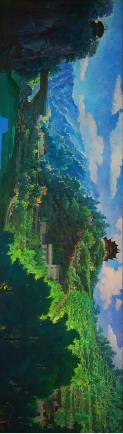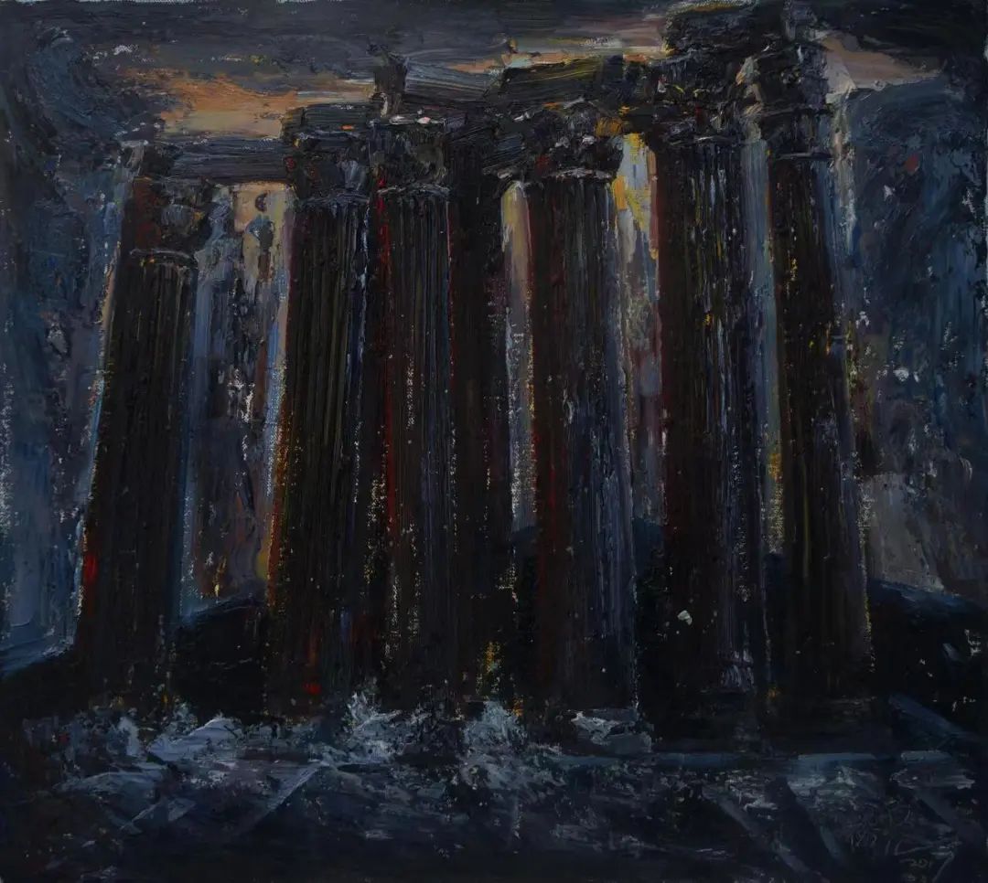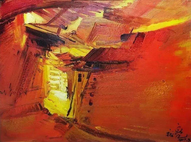 德國(guó)美術(shù)在西方美術(shù)史中地位特殊,這源于藝術(shù)家的思想與視角的奇特性。從丟勒精致的人文教養(yǎng)到格呂內(nèi)瓦爾德的奇幻隱晦,從門(mén)采爾的現(xiàn)實(shí)情懷到斯托克的象征批判,從現(xiàn)代橋社表現(xiàn)主義的離經(jīng)叛道到后現(xiàn)代新表現(xiàn)主義的集體反思與升華,它們無(wú)不體現(xiàn)著德意志民族復(fù)雜的真實(shí)內(nèi)省和嚴(yán)謹(jǐn)?shù)睦硇哉芩肌TA链舜螝W洲訪(fǎng)學(xué)主要是在德國(guó)圖賓根大學(xué)訪(fǎng)學(xué),這所大學(xué)是黑格爾、謝林、荷爾德林的母校,理性邏輯的哲思傳統(tǒng)是該校的優(yōu)秀品質(zhì)。裕亮在此學(xué)習(xí),無(wú)形中也汲入了這樣的精神品質(zhì),并將之融入體現(xiàn)在這批創(chuàng)作寫(xiě)生的作品中。作品不再是簡(jiǎn)單的情感抒發(fā),深層之處透著他對(duì)東西方藝術(shù)融合的思考,有著對(duì)生命情感的理性反思。這批寫(xiě)生作品尺幅不大,用筆質(zhì)樸率意,率意中顯出理性。畫(huà)面色彩有強(qiáng)烈的視覺(jué)沖擊力,有著德國(guó)表現(xiàn)主義的繪畫(huà)余韻。無(wú)論是表現(xiàn)《奧林匹亞宙斯神廟》的滄桑,還是展現(xiàn)《圣托里尼島》的圣潔,抑或追憶《維也納》的映象,已不滿(mǎn)足于簡(jiǎn)單再現(xiàn)歐洲的人文景觀(guān),而是注重個(gè)人情緒的主觀(guān)表達(dá),以及對(duì)文化歷史感的審美觀(guān)照。作品畫(huà)面既有現(xiàn)實(shí)感,更有其個(gè)人對(duì)場(chǎng)景感懷的內(nèi)心情愫。