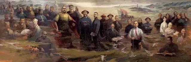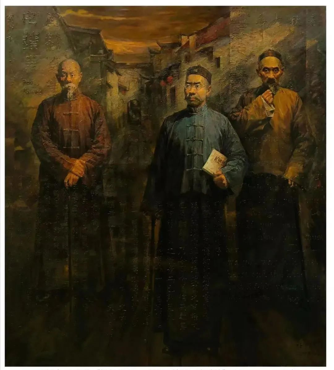 王裕亮 楊幼梅《譯壇先驅(qū)——嚴(yán)復(fù)、林紓、辜鴻銘》200x180cm 2018 (作品入選第十三屆全國(guó)美展,被福建省美術(shù)館收藏)