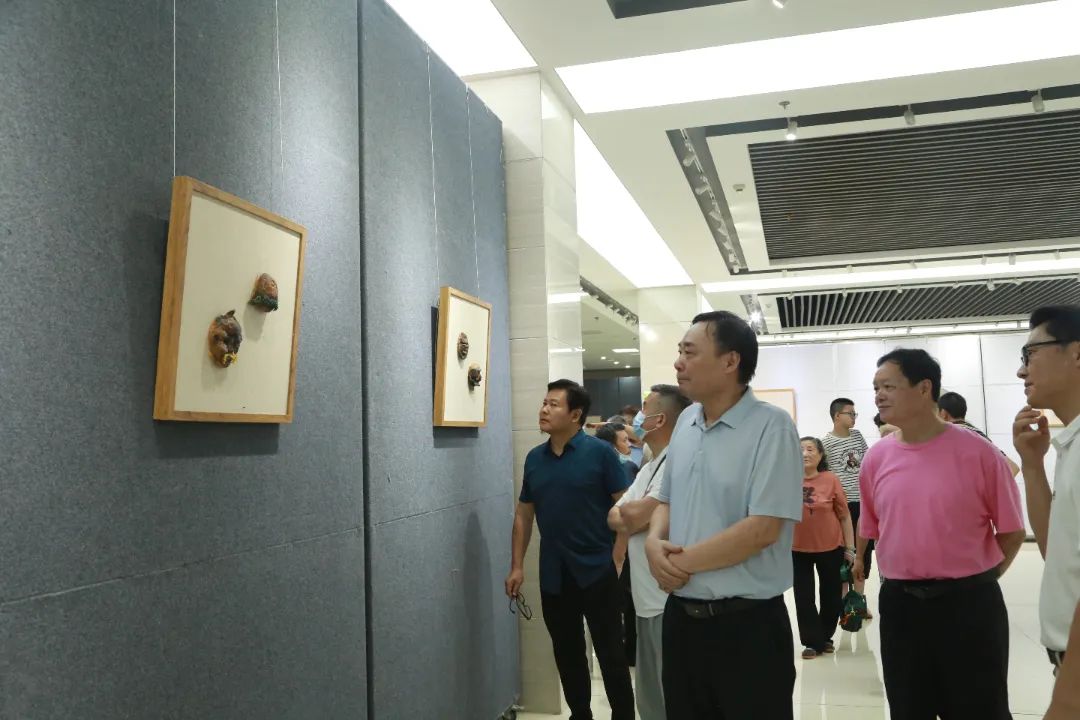 6月26日上午9:50,“喜迎二十大 禮贊新時代”——張遠珍《荊楚珍稀面具》暨魏新《天問》母子藝術展開幕式在市圖書館一樓大廳舉辦。市文聯(lián)各文藝家協(xié)會代表、市美協(xié)主席團部分成員及社會各界人士300余人參加了開幕式。