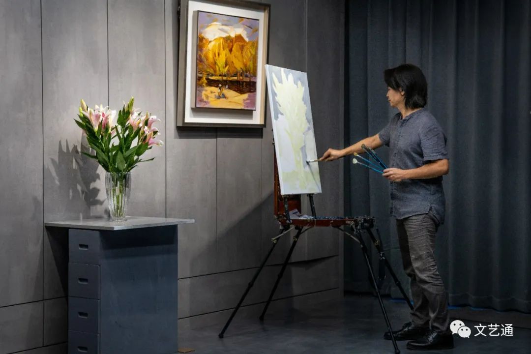 此時(shí),背景的鋼琴曲就這樣滑入了畫(huà)作中,與肆意綻放的百合共舞,我仿佛看到一簇生命在他的筆下耀眼奪目,我想,那就是光吧。