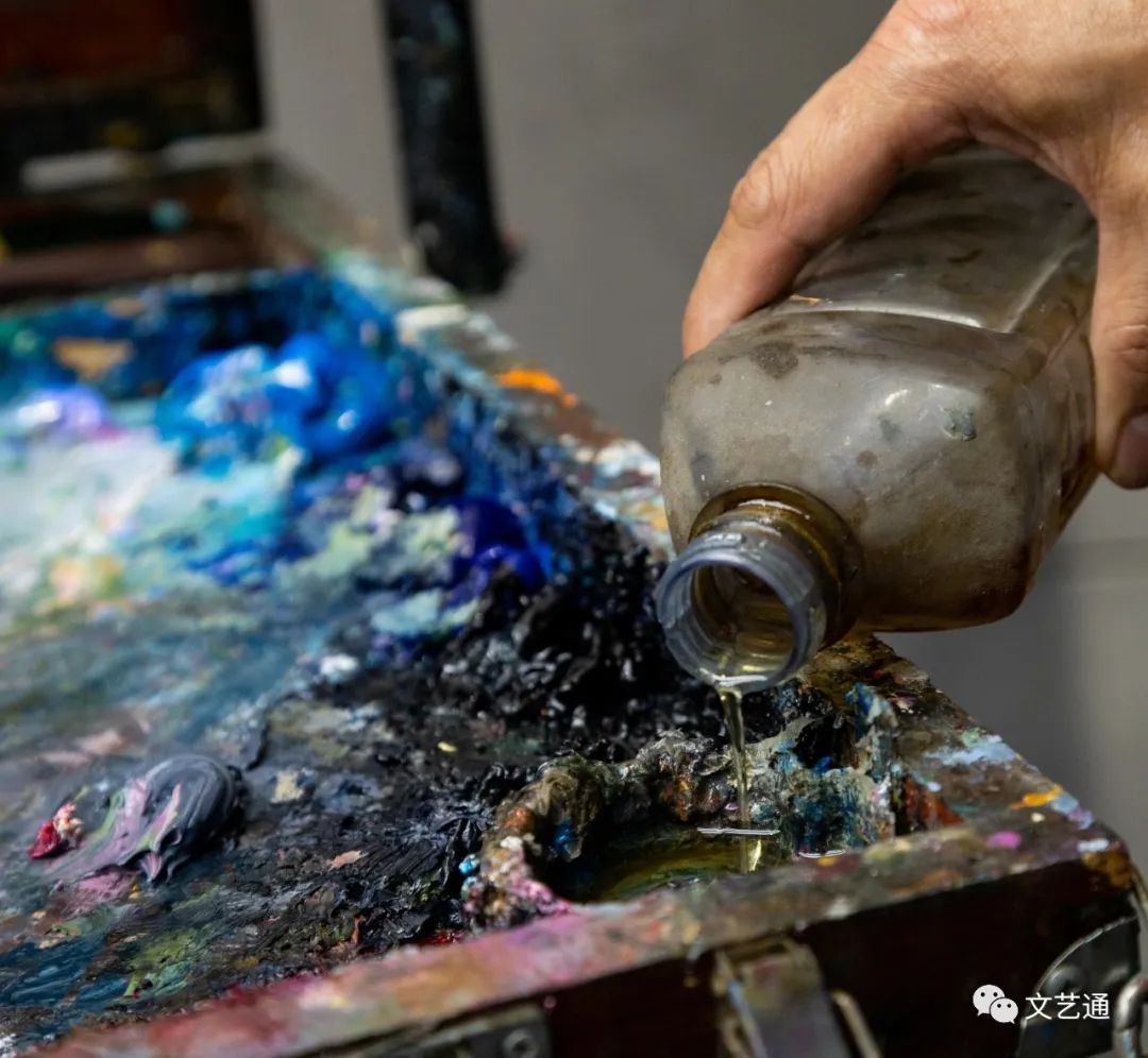 王裕亮對(duì)一束百合進(jìn)行寫(xiě)生,按照往常打開(kāi)音樂(lè),拿起畫(huà)筆,蘸取顏料,仿佛魔法般,花瓶里的百合一下子被搬到了畫(huà)中。