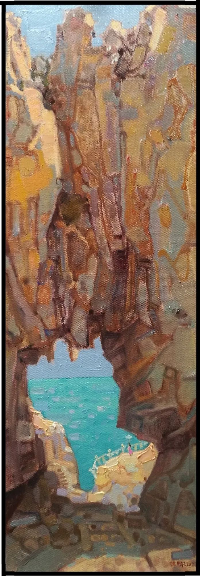 陳漢卿說(shuō),很榮幸參加這次大型的寫(xiě)生采風(fēng)活動(dòng),感謝主辦方盛情邀約,讓我們能再次在媽祖圣地湄洲島相會(huì),并深入實(shí)地采風(fēng)體驗(yàn)媽祖故鄉(xiāng)的人文風(fēng)情及獨(dú)特迷人的海島風(fēng)景,特別早上去鵝尾公園采風(fēng),很興奮,肌理獨(dú)特的風(fēng)蝕巖石,浪漫夢(mèng)幻的藍(lán)色海洋,巖洞奇石,如詩(shī)如畫(huà)。莆田是福建海洋文化的重要海濱城市,有山有海,海洋文化之特征尤其典型,媽祖文化亦是福建海洋文化的重要組成元素,媽祖文化敬仰者遍布世界各地,影響深遠(yuǎn)。做為藝術(shù)實(shí)踐者,我希望能充分應(yīng)用自己繪畫(huà)上的專(zhuān)業(yè)特長(zhǎng),通過(guò)本次采風(fēng),盡力在畫(huà)面上充分表現(xiàn)媽祖故鄉(xiāng)的風(fēng)土人情及獨(dú)特海景!