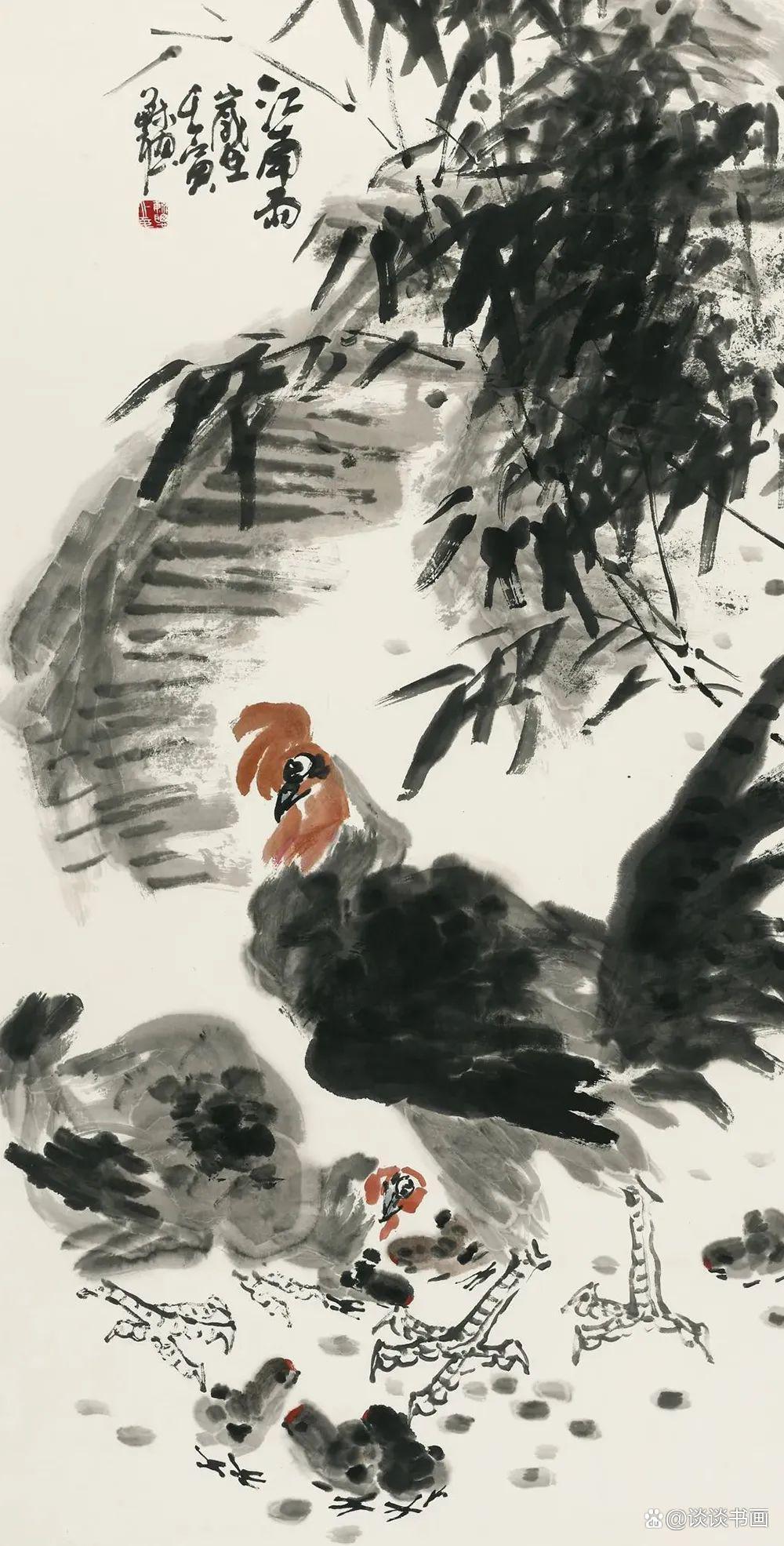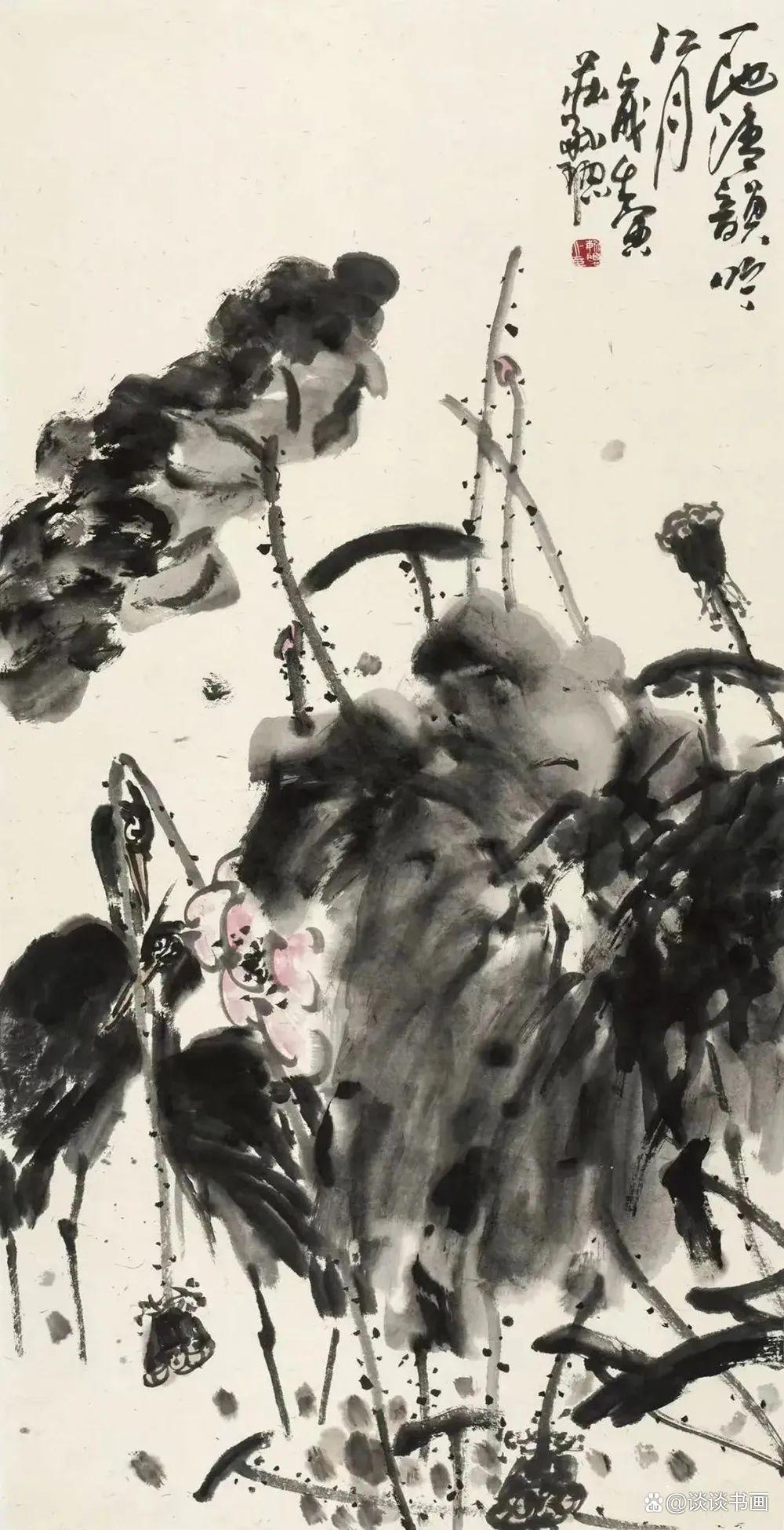 其藝術(shù)博綜集粹,淵源廣大,由近現(xiàn)代之吳昌碩、齊白石、潘天壽諸巨匠,追溯至揚州八怪、八大山人、青藤白陽,悉為己用,蔚為一家。