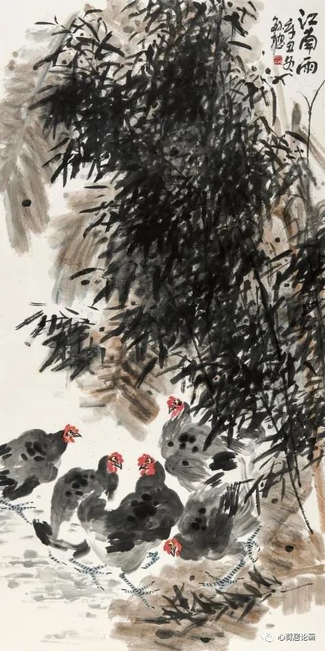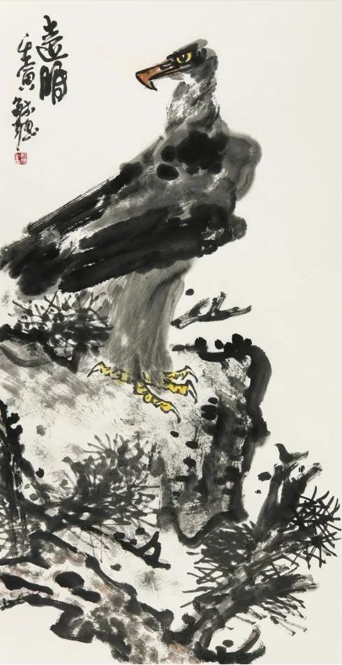 其藝術博綜集粹,淵源廣大,由近現(xiàn)代之吳昌碩、齊白石、潘天壽諸巨匠,追溯至揚州八怪、八大山人、青藤白陽,悉為己用,蔚為一家。