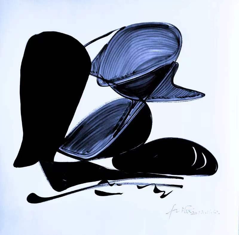 欣賞石三毛老師的作品,線條和空間一直在運(yùn)動(dòng)和變化著,它們很難被作為靜態(tài)的畫面去觀看,而是被流動(dòng)的力量所牽引。整體的韻律、線條的質(zhì)地,以及細(xì)節(jié)處重新打開的微觀世界,形成了不同層次的觀看空間,讓觀者自身也無法停留在一處,而是必須不斷改變與作品的距離,也許是在零距離的凝視中,又或者是在遠(yuǎn)處,才最終獲得與畫面的親近感。