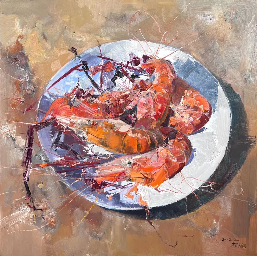 ▲《蝦 no.3》丨40X40cm | 油畫(huà) 2022年